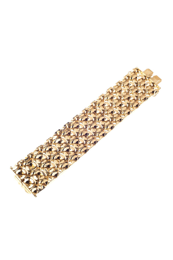 in oro giallo, anni ‘40, lavorato a motivi geometrici circolari.