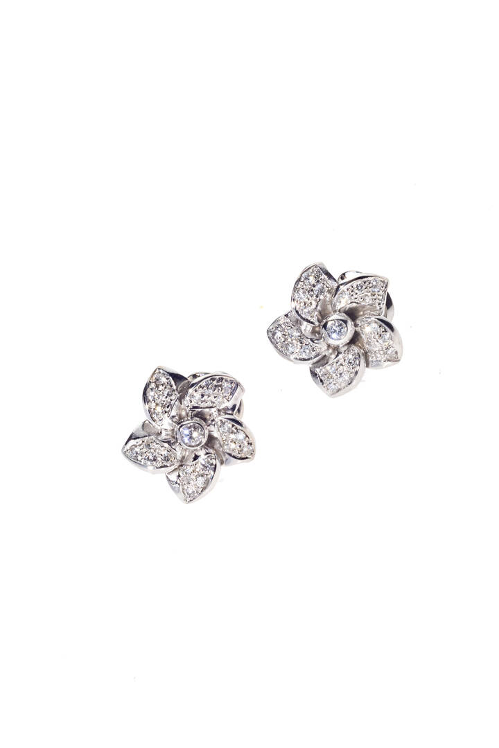 in oro bianco, a forma di fiore, con diamanti taglio brillante per totali ct 0,45 ca