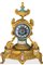 Trittico composto da orologio e coppia di candelieri a 5 luci con inserti in porcellana nei colori del Sevres, Napoleone III, metà XIX secolo. Orologio H cm 48. Base cm 32x19. Candelieri H cm 44. Funzionante, da revisionare