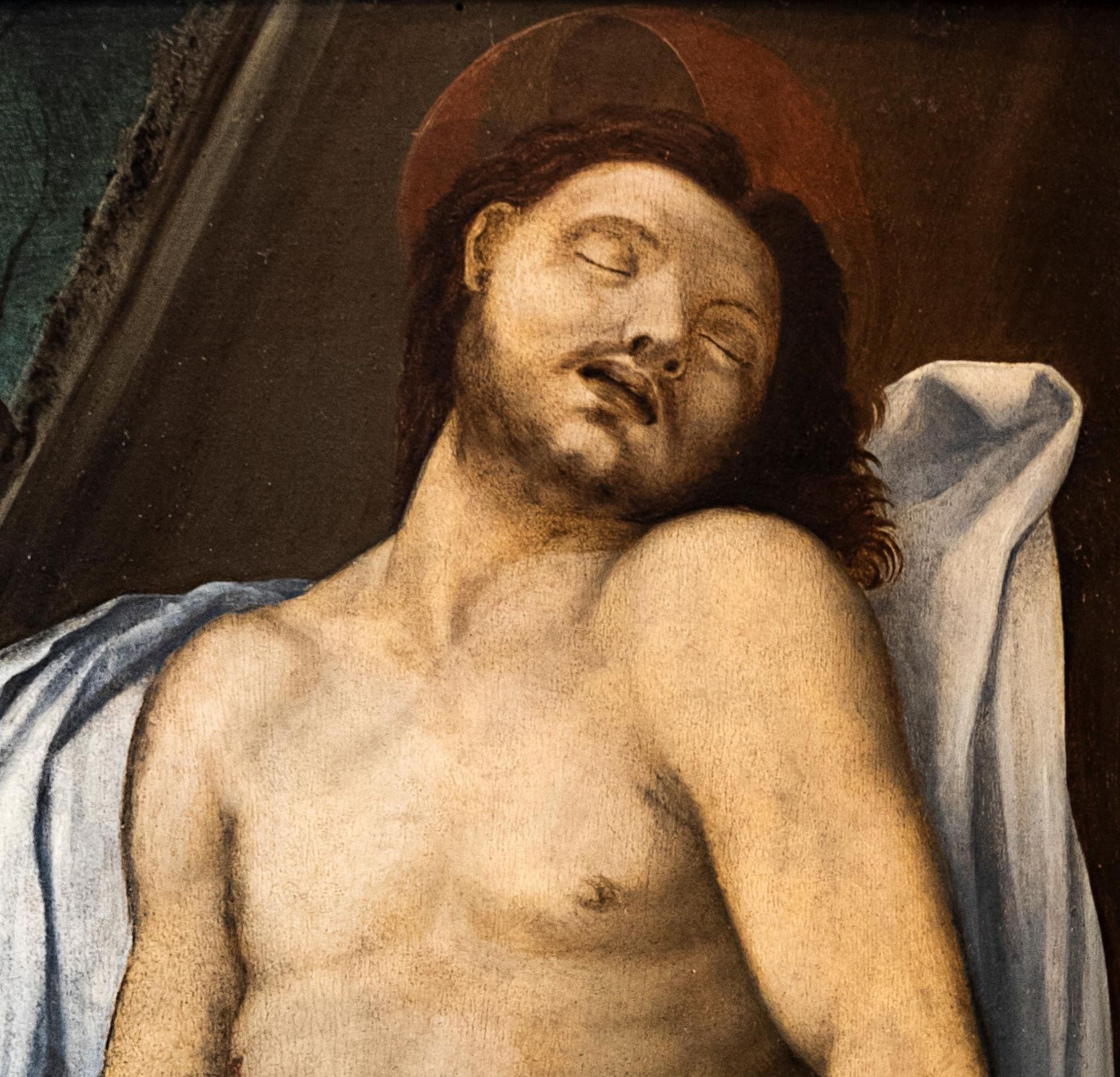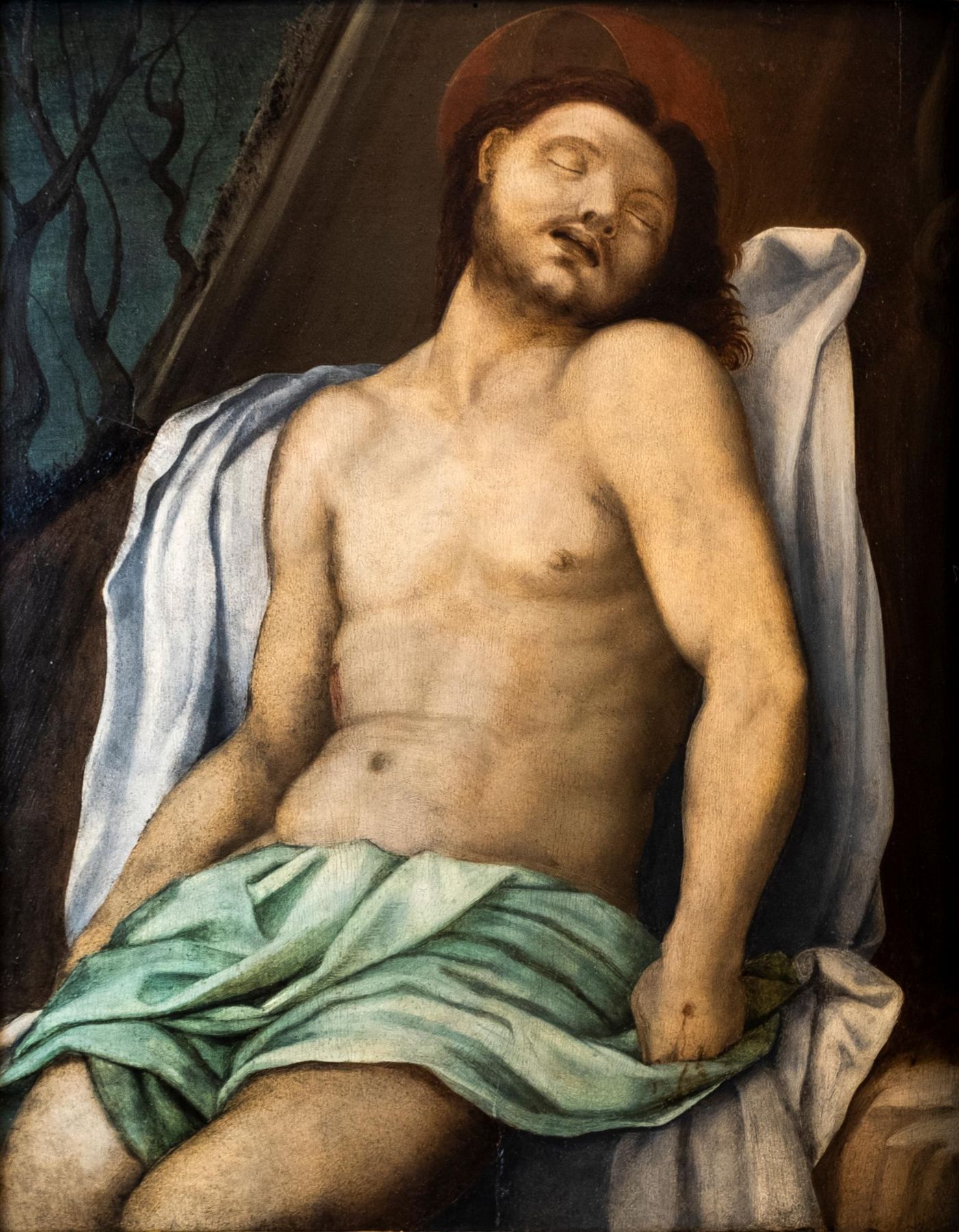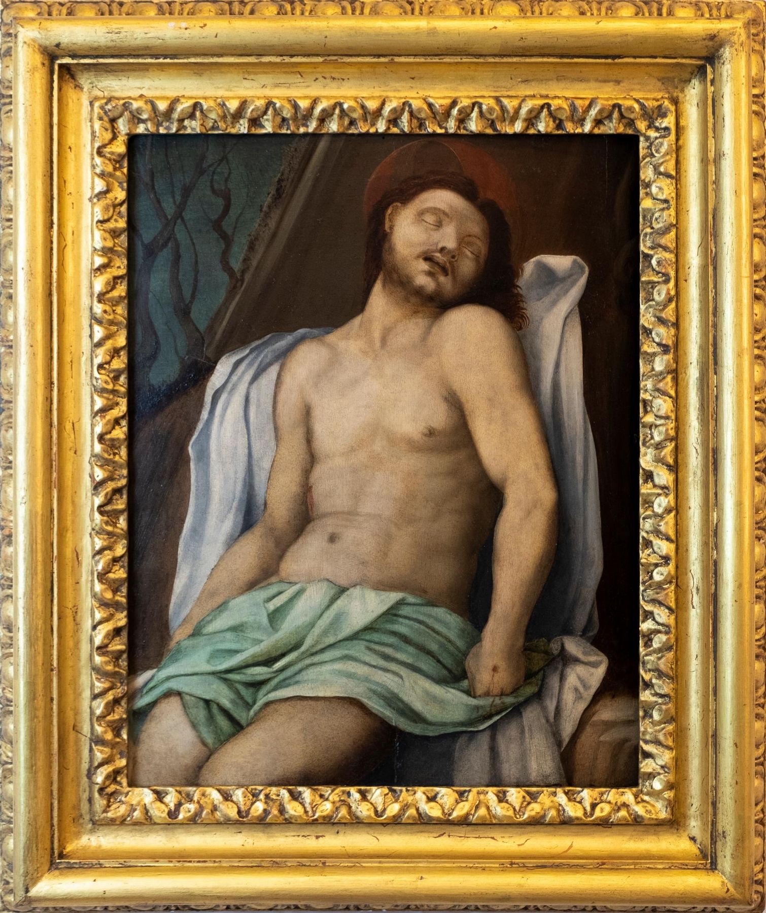 Olio su tavola raffigurante Cristo deposto. Cm 52x42, attribuito Carlo Portelli (Loro Ciuffenna, 1510 – Firenze, 1574). Expertis di Emilio Negro. Opera fornita di documento di libera circolazione.