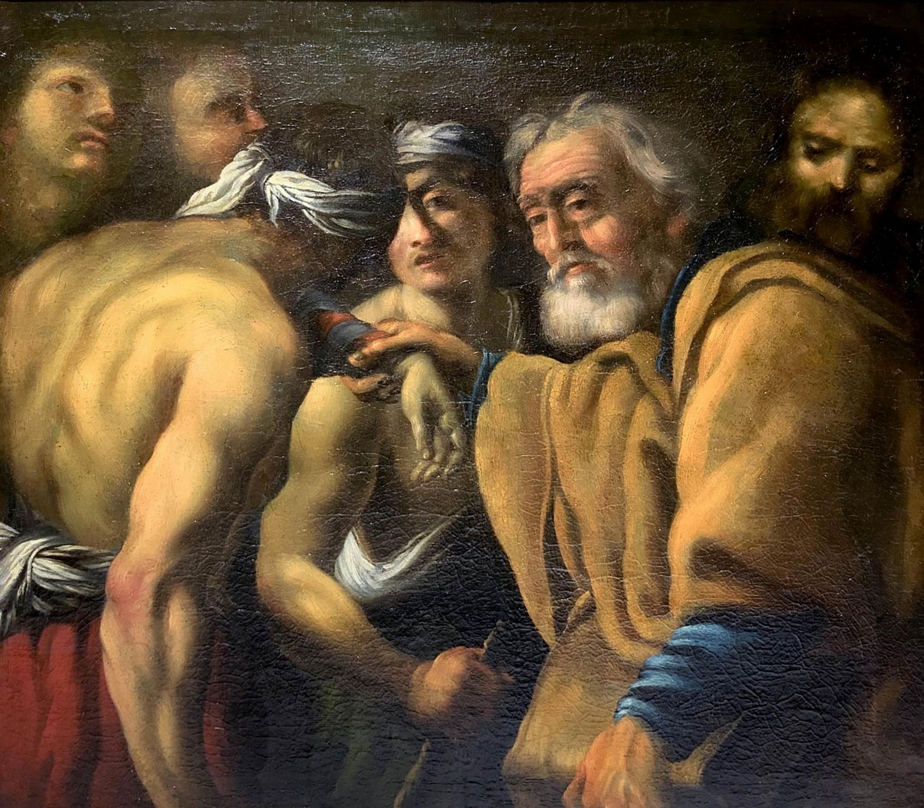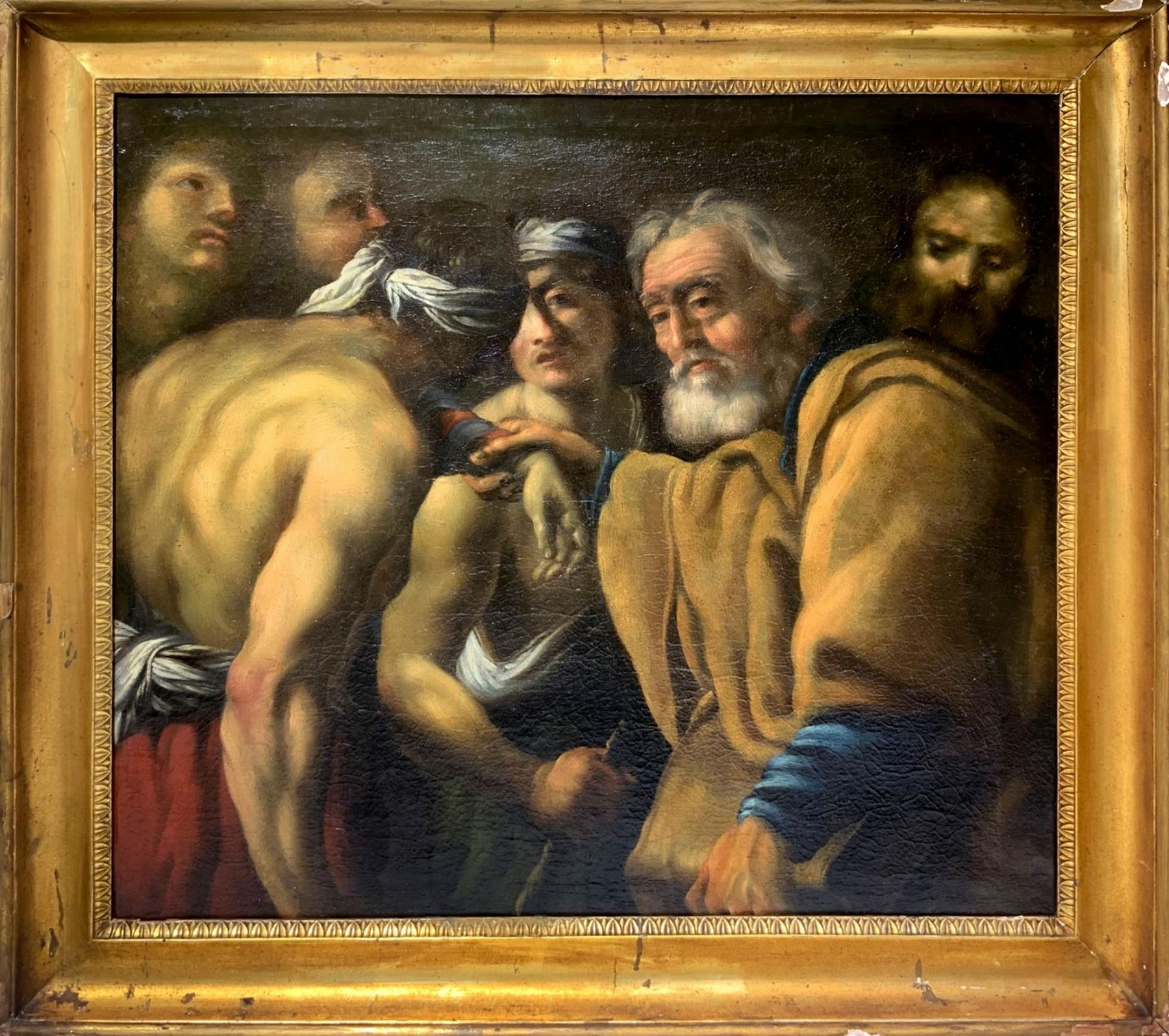 Dipinto ad olio su tela raffigurante "Il ritorno del figlio prodigo", XVII secolo, attribuito a Giovan Battista Langetti (Genova, 1635 – Venezia, 22 ottobre 1676), Cm 93x100. L'opera è oralmente attribuita a Giovan Battista Langetti (Genova, 1635 – Venezia, 22 ottobre 1676). Poche e frammentarie notizie ci giungono circa il suo primo periodo di formazione, ma è ipotizzabile un soggiorno a Roma, durante il quale il Langetti è attivo presso la bottega di Pietro da Cortona. Nel periodo immediatamente successivo, è probabile la sua presenza a Napoli, dove rimarrà fortemente impressionato dalla visione delle opere di Jusepe de Ribera, arricchendo così il suo bagaglio conoscitivo, costituito dalle reminiscenze dei pittori genovesi Gioacchino Assereto e Giovan Benedetto Castiglione, e da quelle dei fiamminghi Rubens e Van Dyck, che a Genova aveveno soggiornato ed eseguito numerose opere nei primi decenni del Seicento. Intorno alla metà degli anni '50 del secolo si trasferirà a Venezia, dove vivrà per il resto della sua vita, trascorrendo un primo periodo presso la bottega di Giovan Francesco Cassana, secondo quanto ci racconta l'artista e scrittore Marco Boschini, che nel 1660 pubblicò la Carta del navegar pitoresco, sulle bellezze pittoriche di Venezia. A riprova della fama conquistata dal Langetti vi sono anche alcune commissioni giunte da fuori Venezia, come quelle provenienti da Firenze, da parte del Granduca Ferdinando II de' Medici, e da Padova, dove sarà attivo nella Chiesa dei Dominicani. L'opera in esame rappresenta l'episodio del ritorno del figlio prodigo, narrato nella parabola di Gesù, tratto dal Vangelo secondo Luca. Il taglio compositivo, il marcato uso del chiaroscuro, il chiaro rimando al naturalismo riberesco, riconducono dunque il dipinto agli anni e all'atmosfera del "gruppo dei Tenebrosi", che ebbero fortuna a Venezia intorno alla metà del '600. Lo stesso Luigi Lanzi coniò per il Langetti l'appellativo di Principe dei Tenebrosi. L'attribuzione, pertanto, potrebbe trovare conferma confrontando il dipinto preso in analisi con le opere certe del Langetti, come quella rappresentante Apollo e Marsia, dove sembra chiara la citazione del personaggio raffigurato di schiena, posto sull'estrema sinistra del dipinto, o quella raffigurante Diogene e Alessandro, dipinta nel 1650 e conservata presso la Fondazione Querini Stampalia, a Venezia.ASORstudio