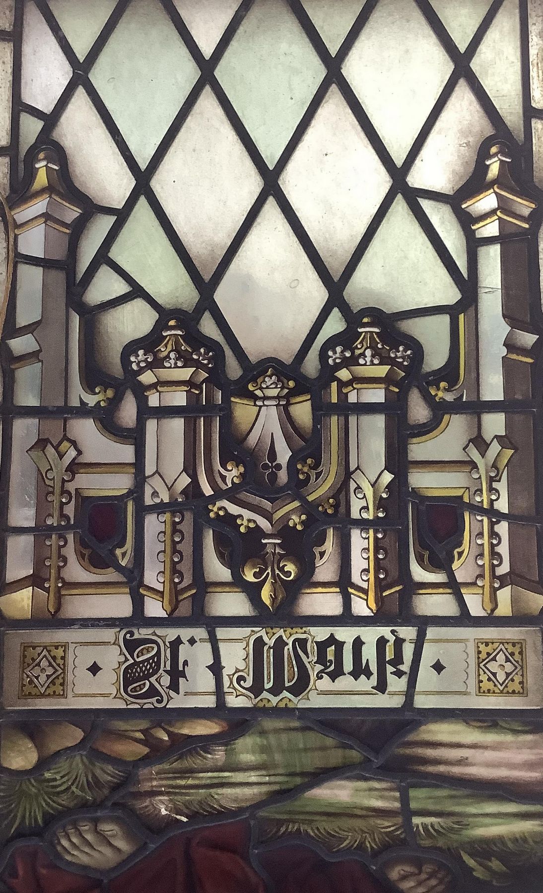 Antica vetrata rilegata a piombo con immagini a infusione nel vetro...