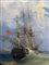 Dipinto ad olio su tela raffigurante veliero a tre alberi, fine XVIII secolo. H cm 57x78