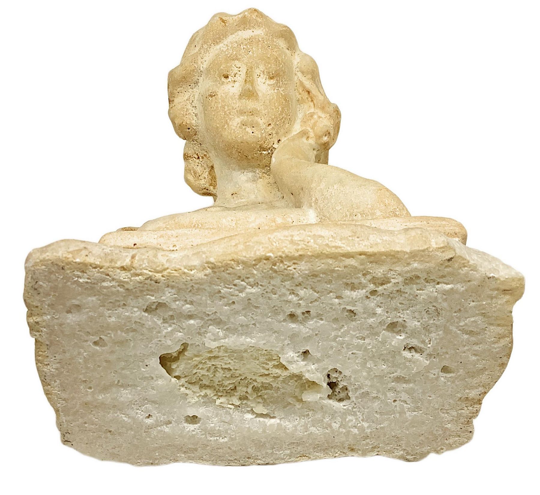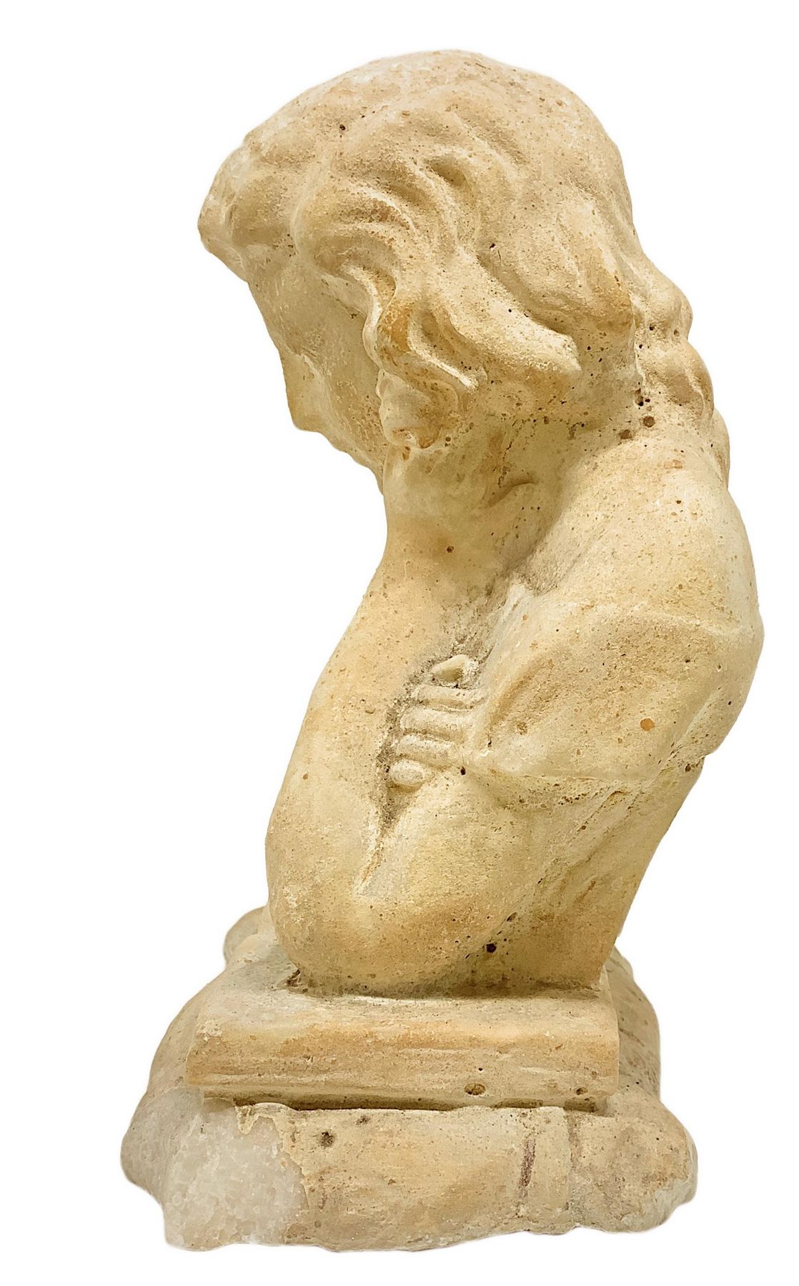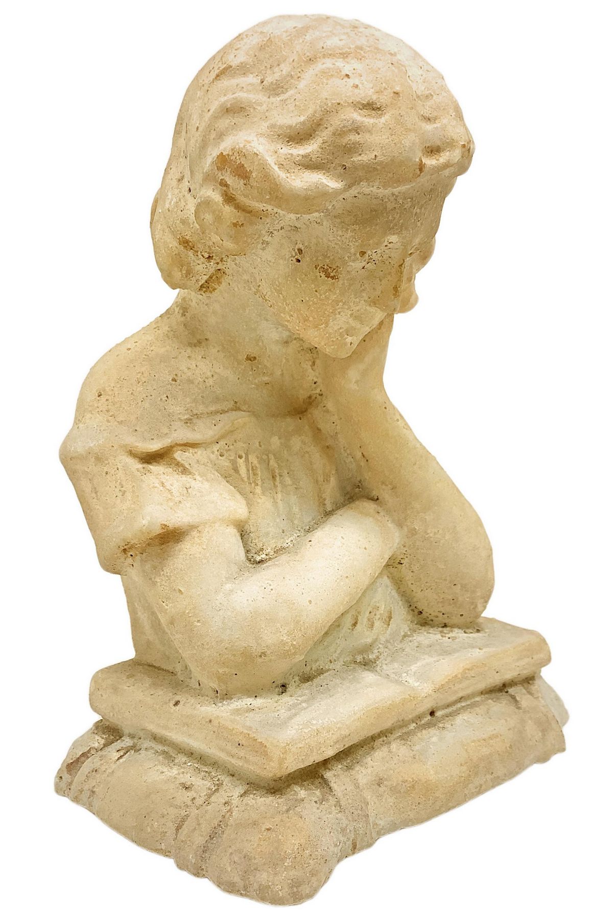 Scultura in marmo bianco raffigurante ragazza con libro, XIX secolo. H cm 17,...