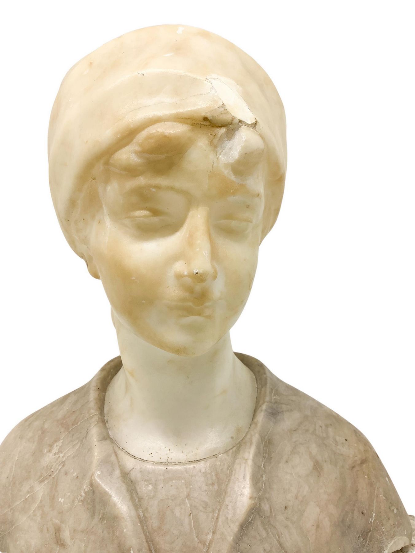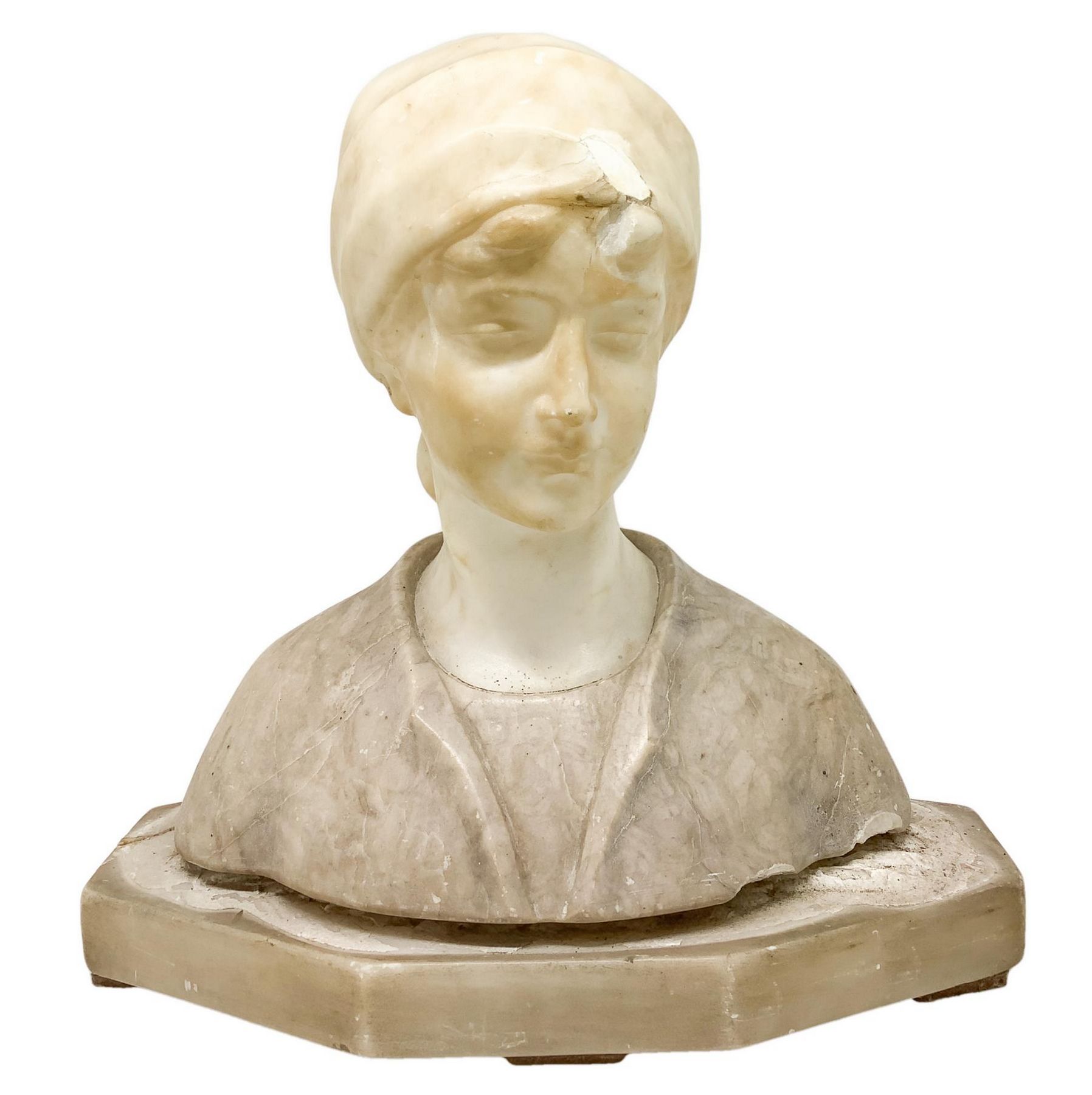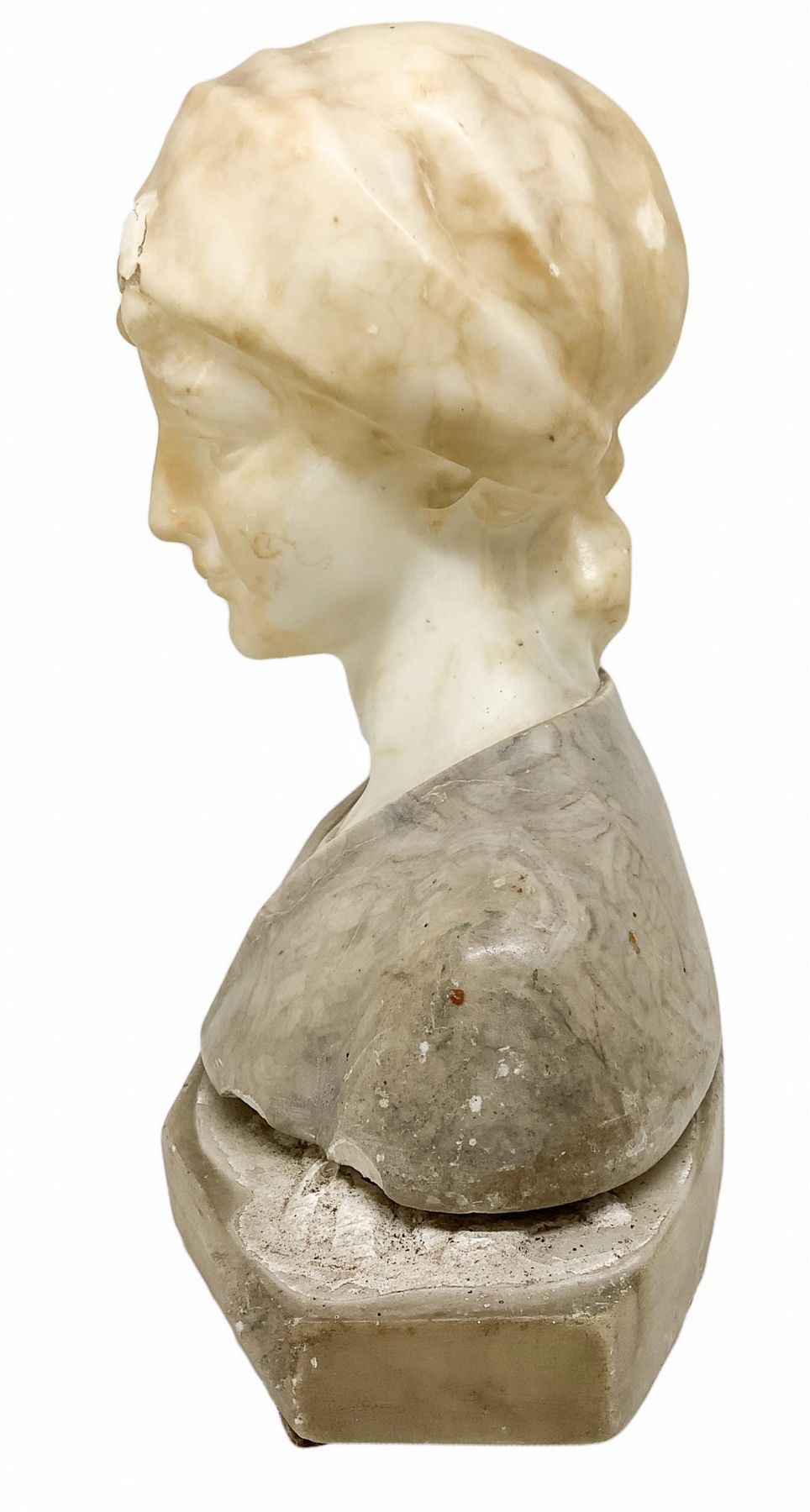Lot 85 | Mezzobusto in marmo raffigurante giovane donna con veste grigia, XX...