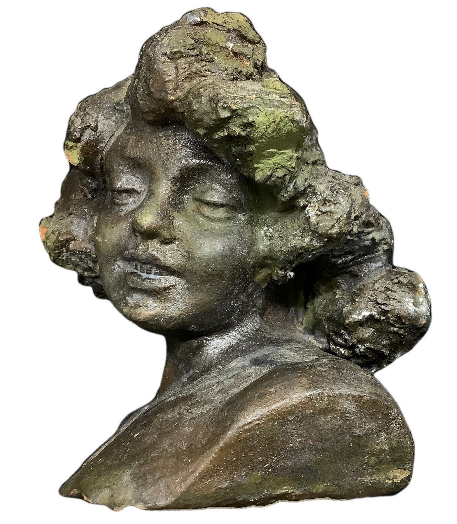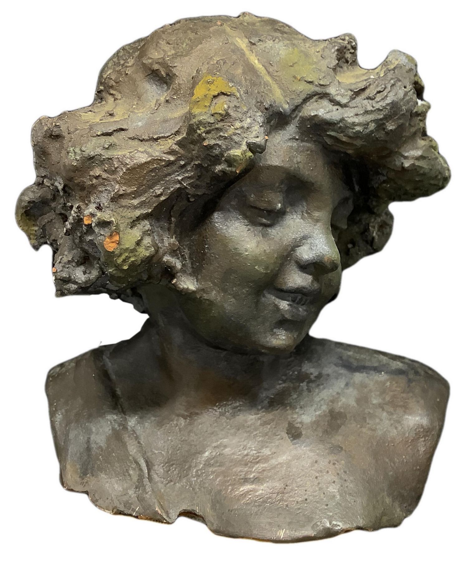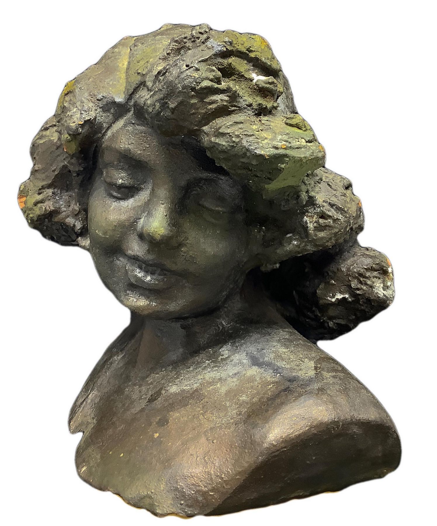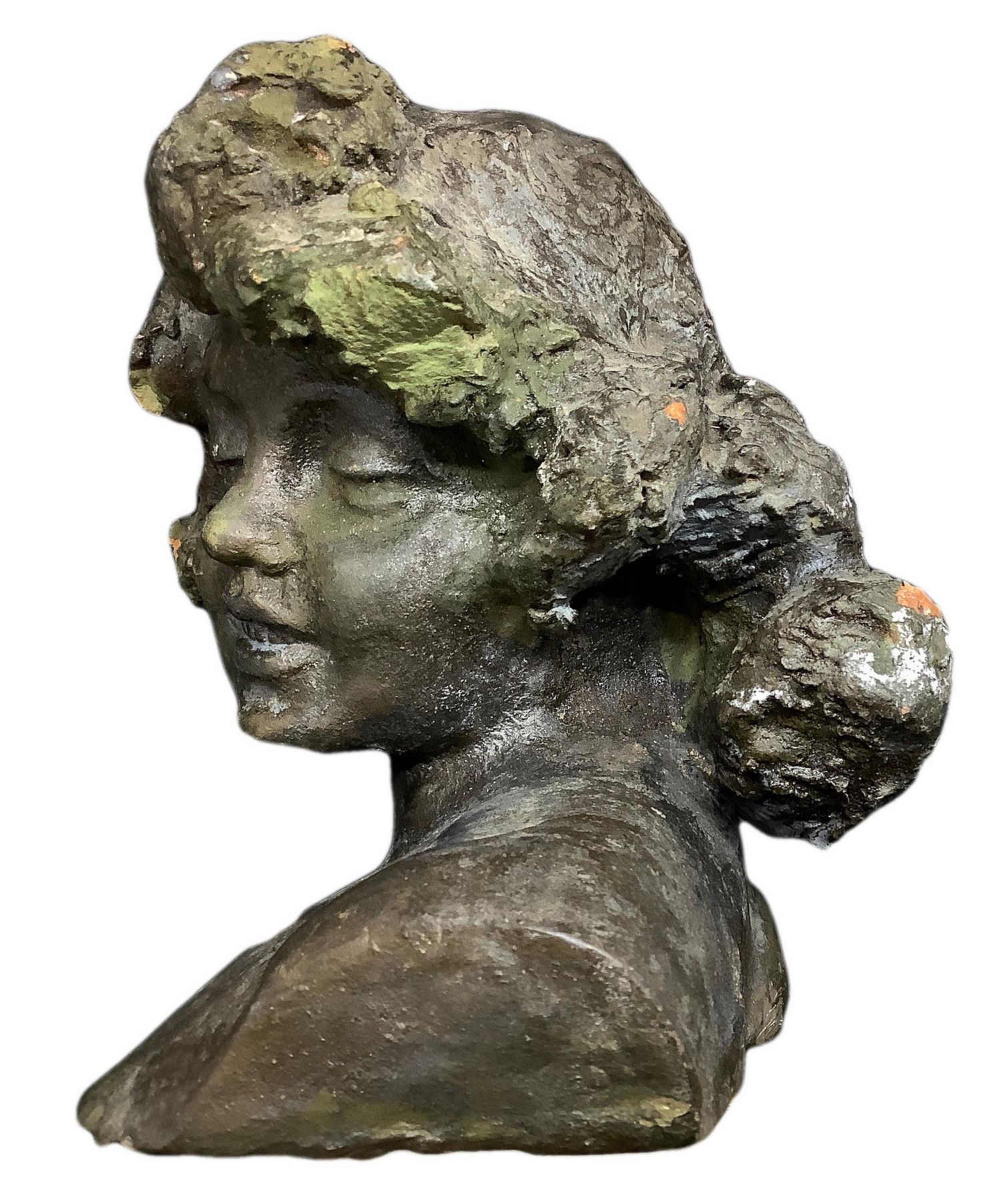 Mezzobusto in terracotta patinato bruno raffigurante giovinetta, XX secolo. H...