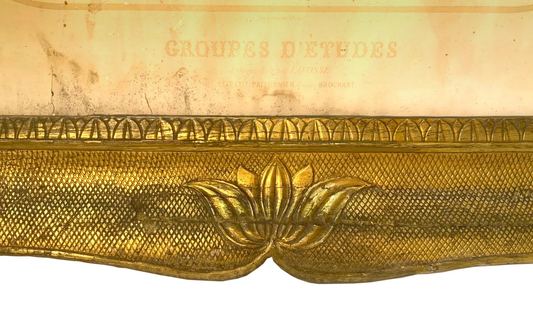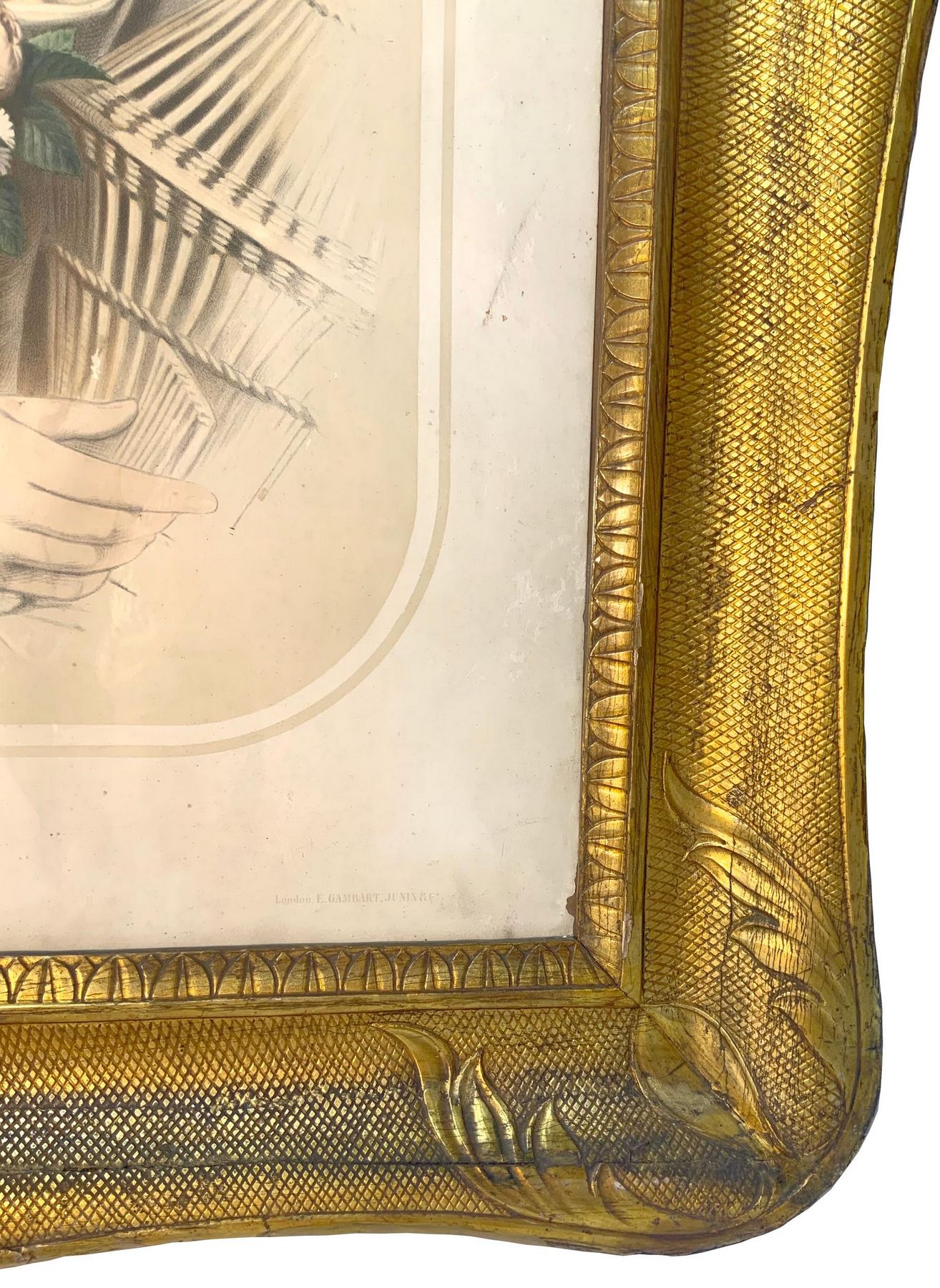 Cornice in legno a vassoio dorata a mecca, Sicilia Inizi XIX secolo con stampa di giovani donne con capello. Cm 105x83 (misure esterne). Cm 86x63 (misure interne)