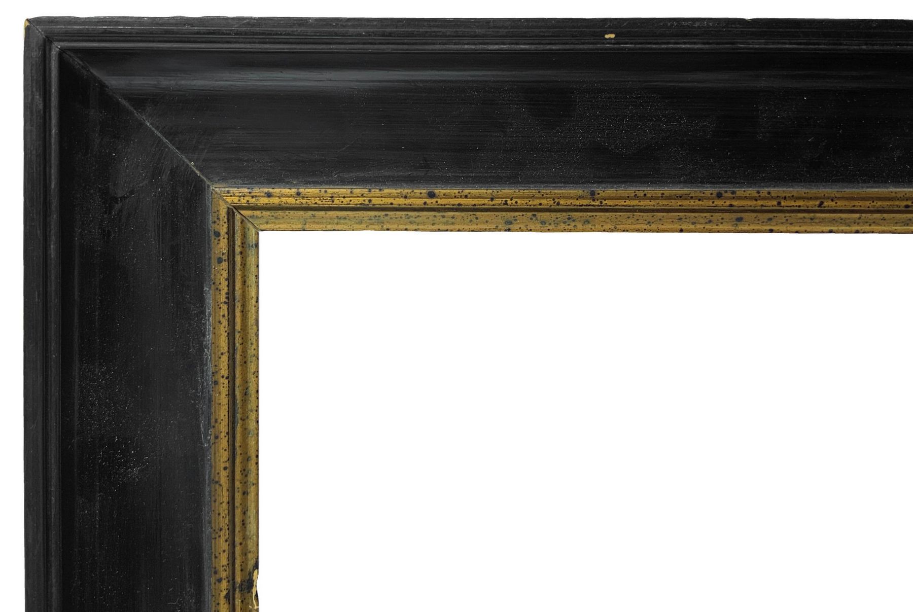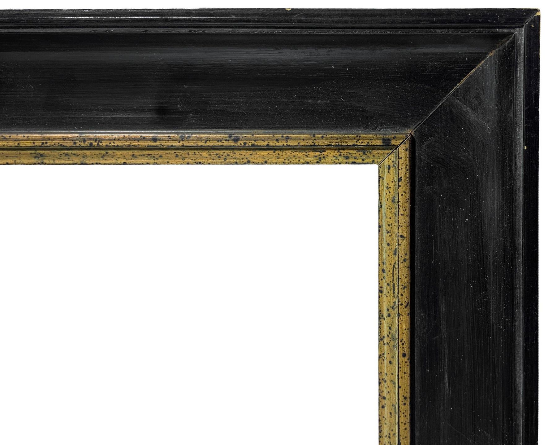 Gruppo di n. 3 cornici. 1- Cornice in legno di colore nero perfilo dorato...