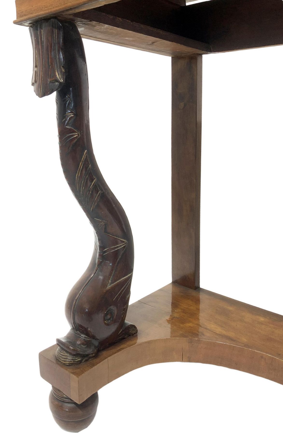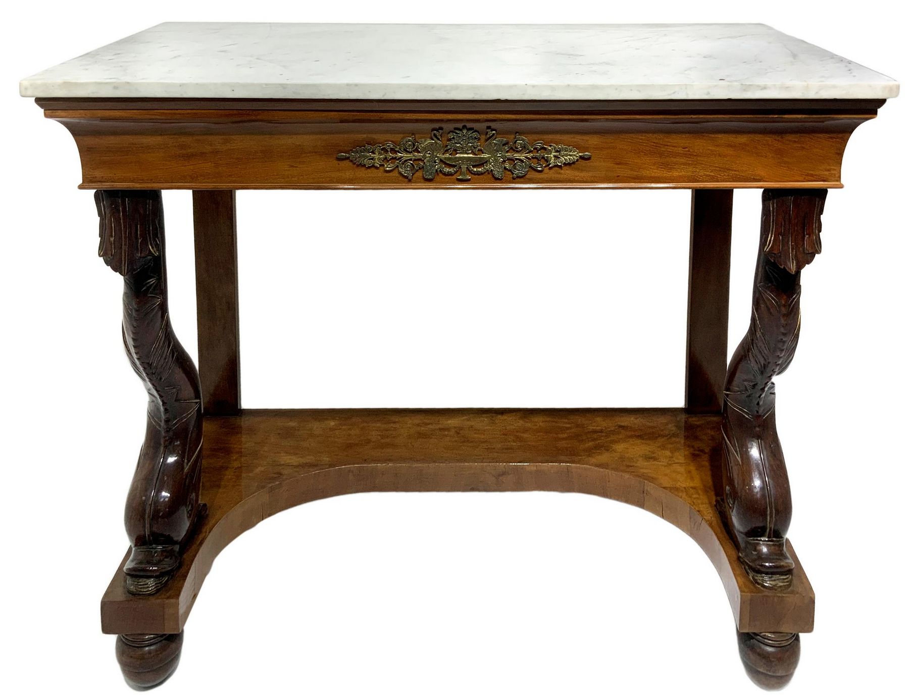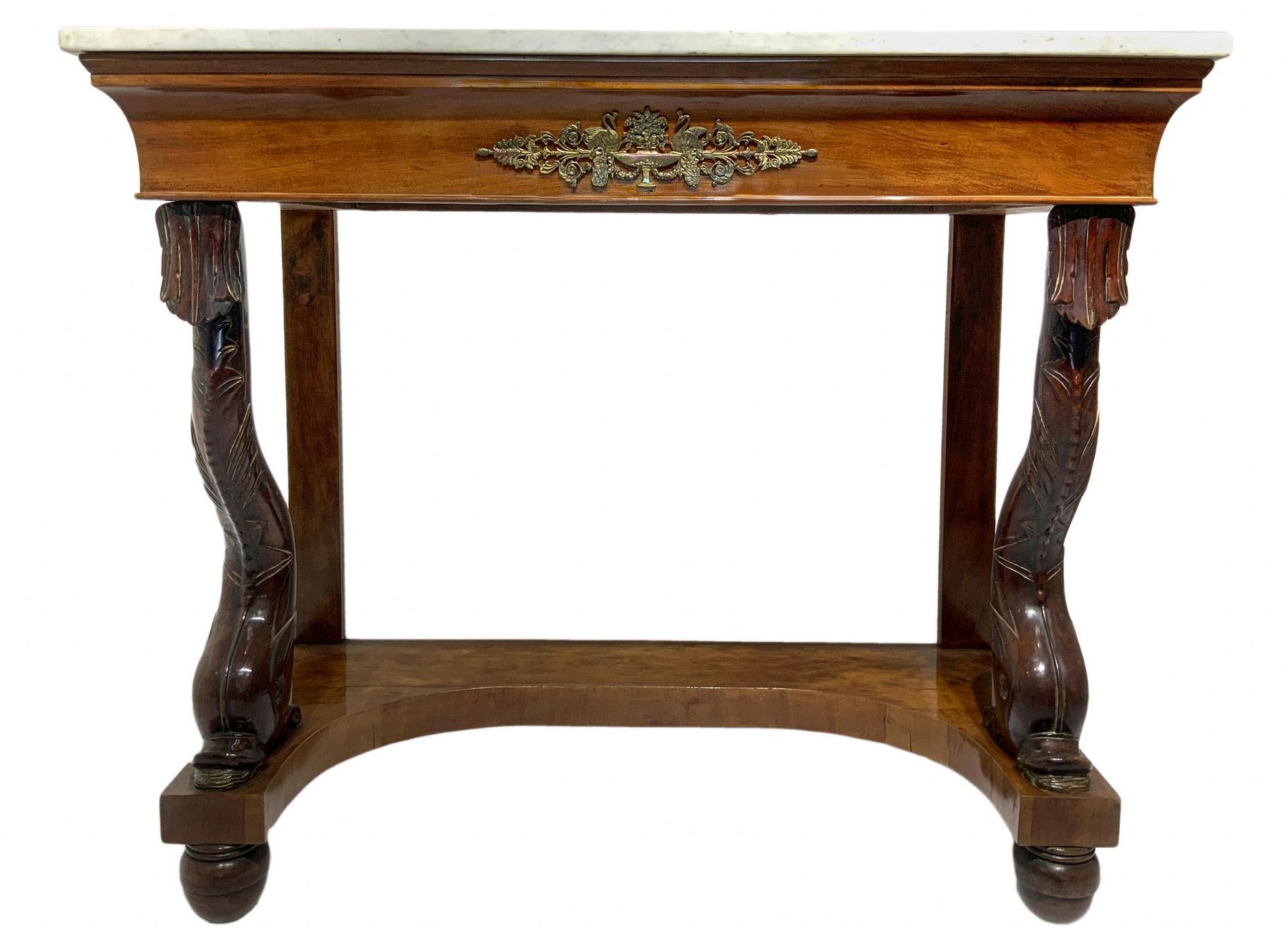 Lot 124 | Console in legno di noce, inizi secolo XIX. Con piedi a delfino, marmo al...