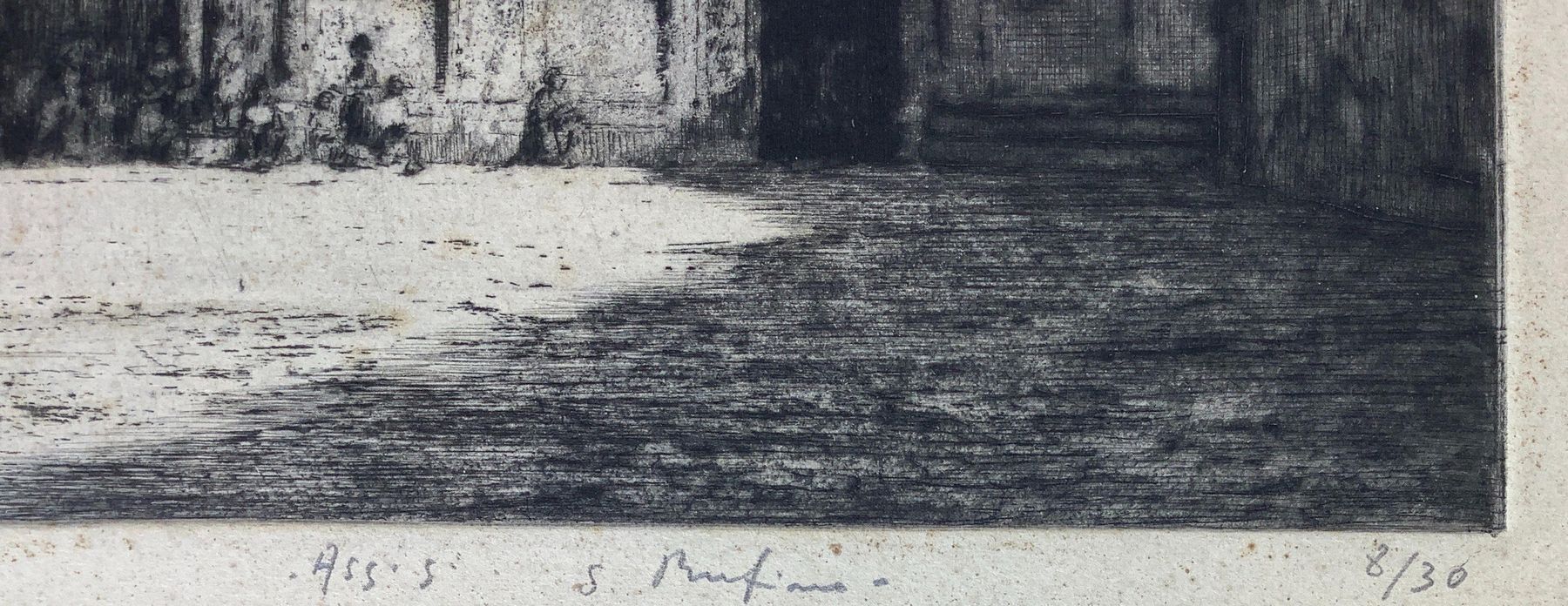 Eccezionale opera in acquaforte raffigurante cattedrale di S.Rufino di Assisi , firmata Mary Cassat (1844- 1926) multiplo 8/30 420 x 400 mm.