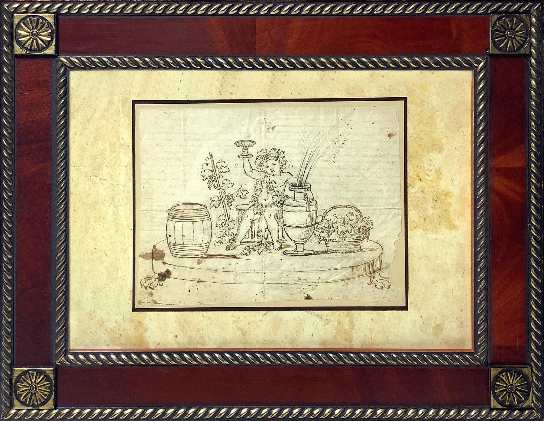 Disegno raffigurante Bacco bambino, attribuito a Diego Rodríguez de Silva y Velázquez (Siviglia 1599- Madrid 1660). Disegno su carta a inchiostro bruno e matita. Mm 200x270, cornice Mm 420x535.