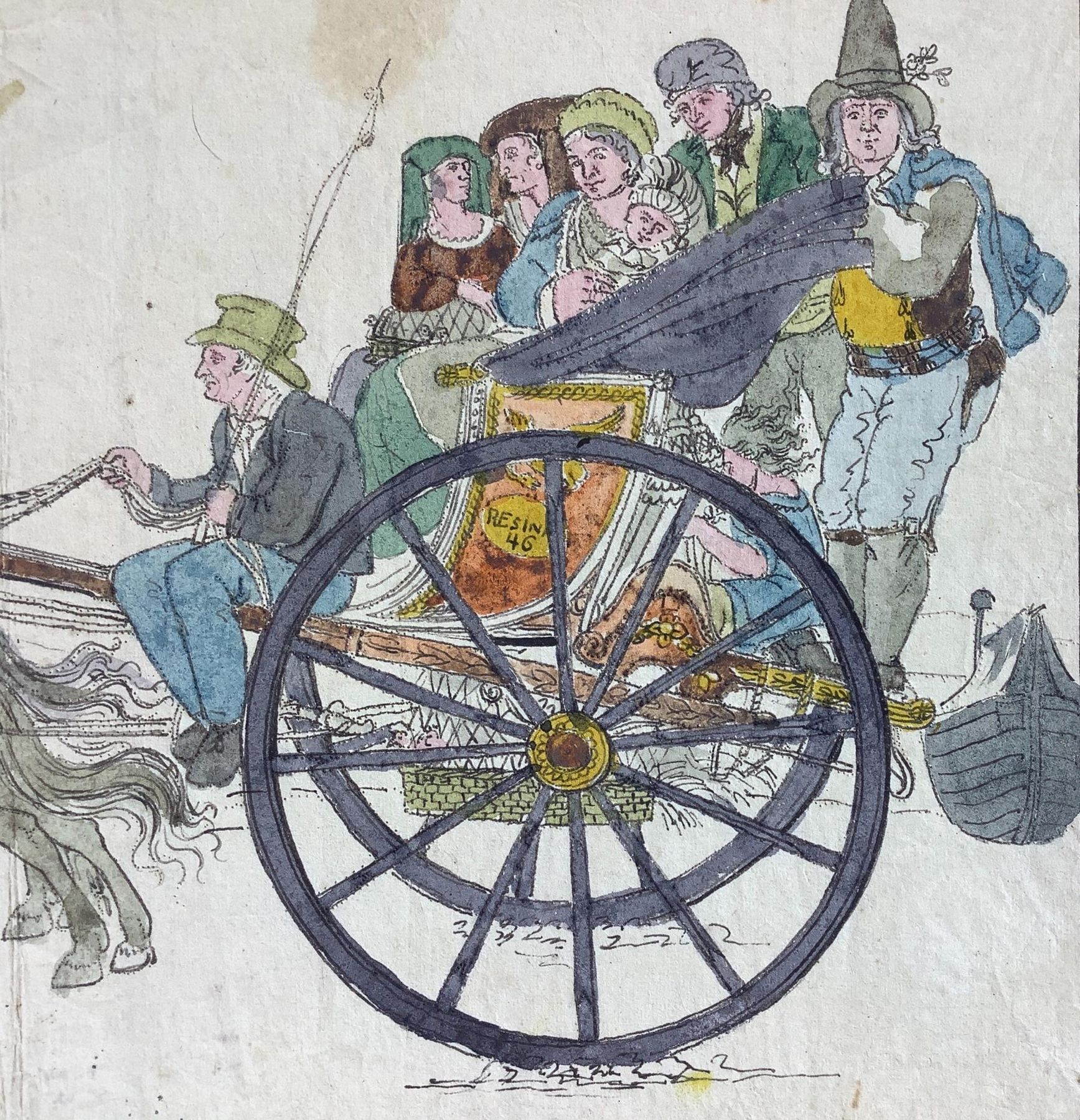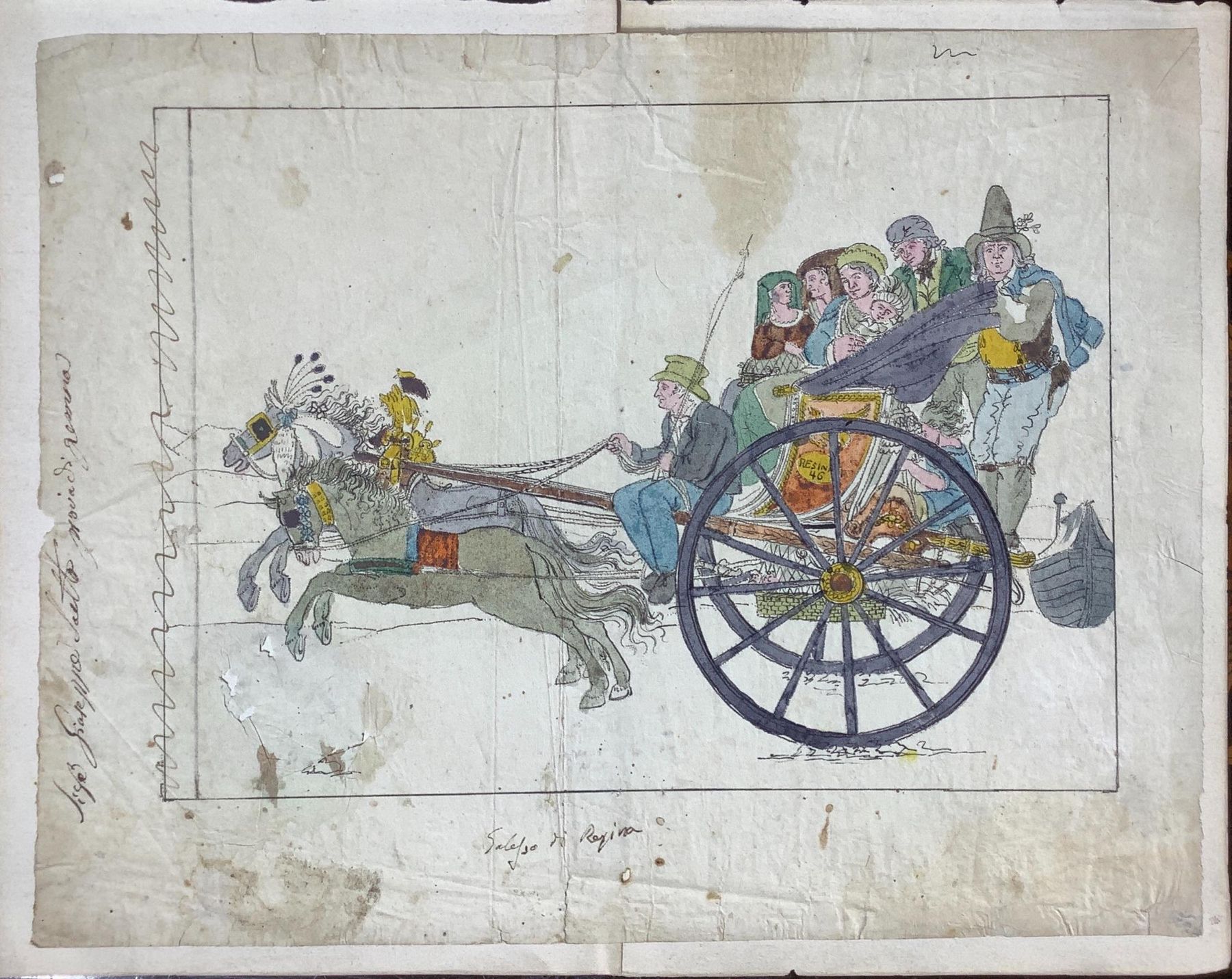 Lot 141 | Disegno ad acquarello su carta raffigurante carro con personaggi. Firmato G....
