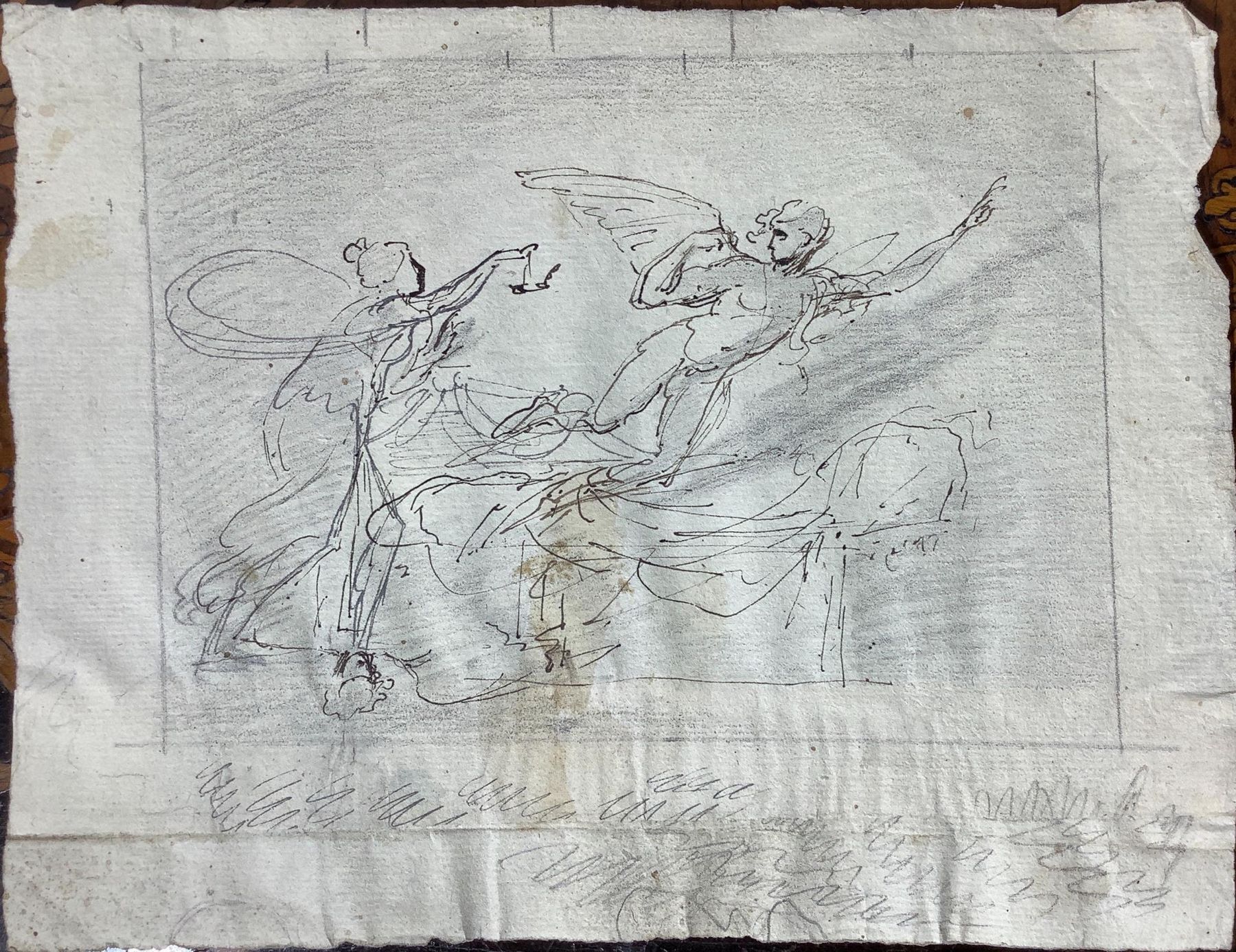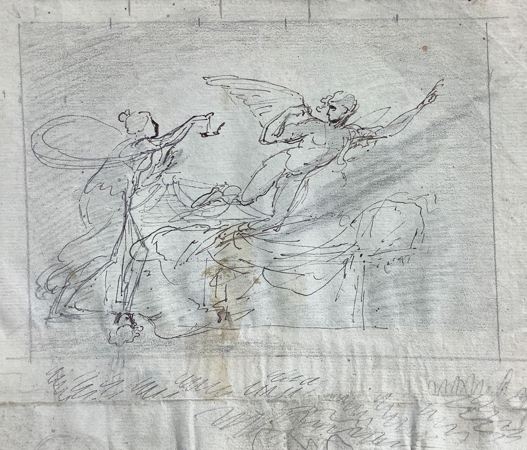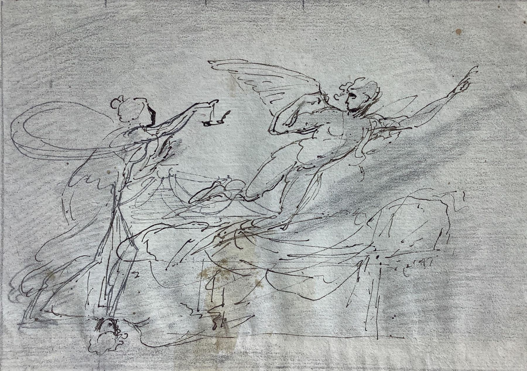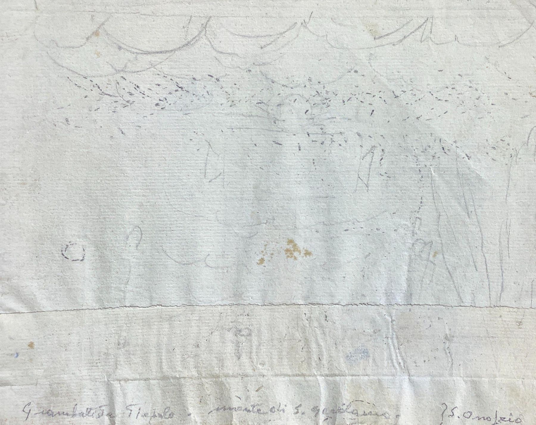 Disegno attribuito a Giambattista Tiepolo (1696- 1770) raffigurante studio di particolare “la morte di San Girolamo“ . Schizzo ad inchiostro e matita su carta . 190x150mm