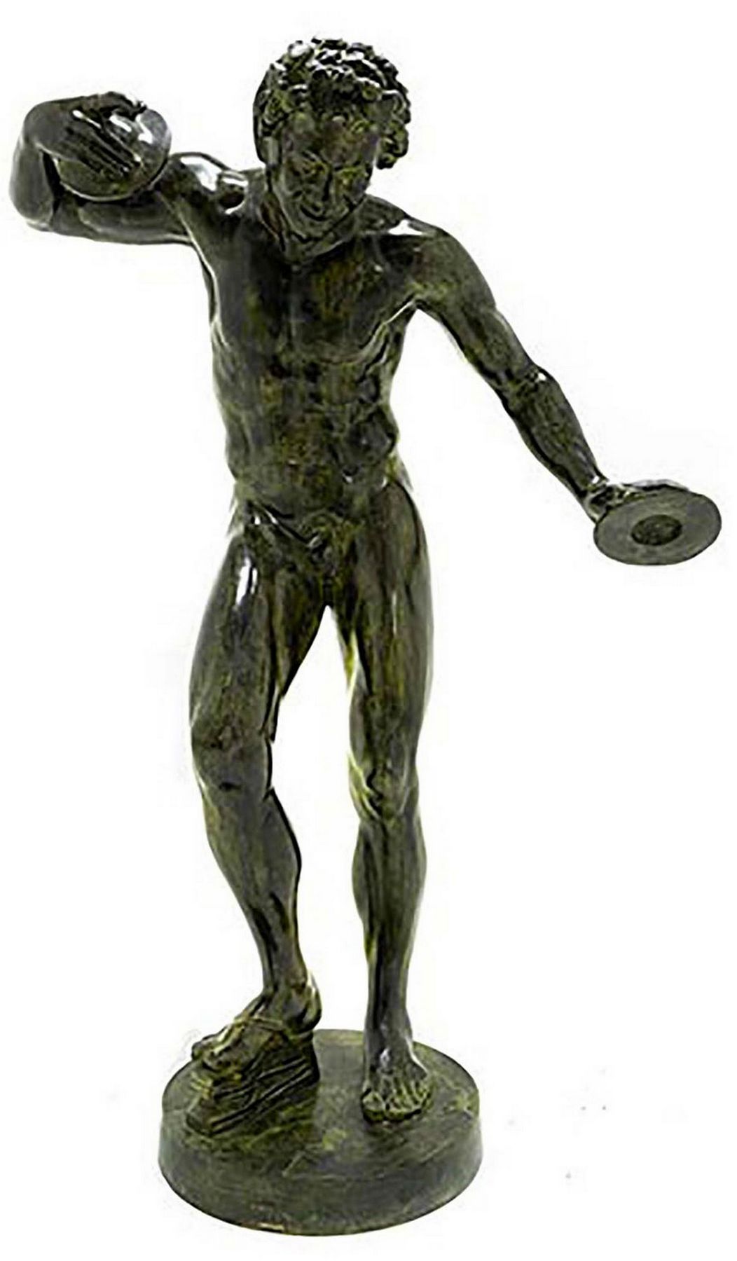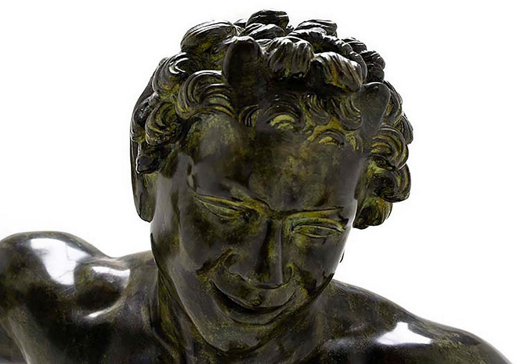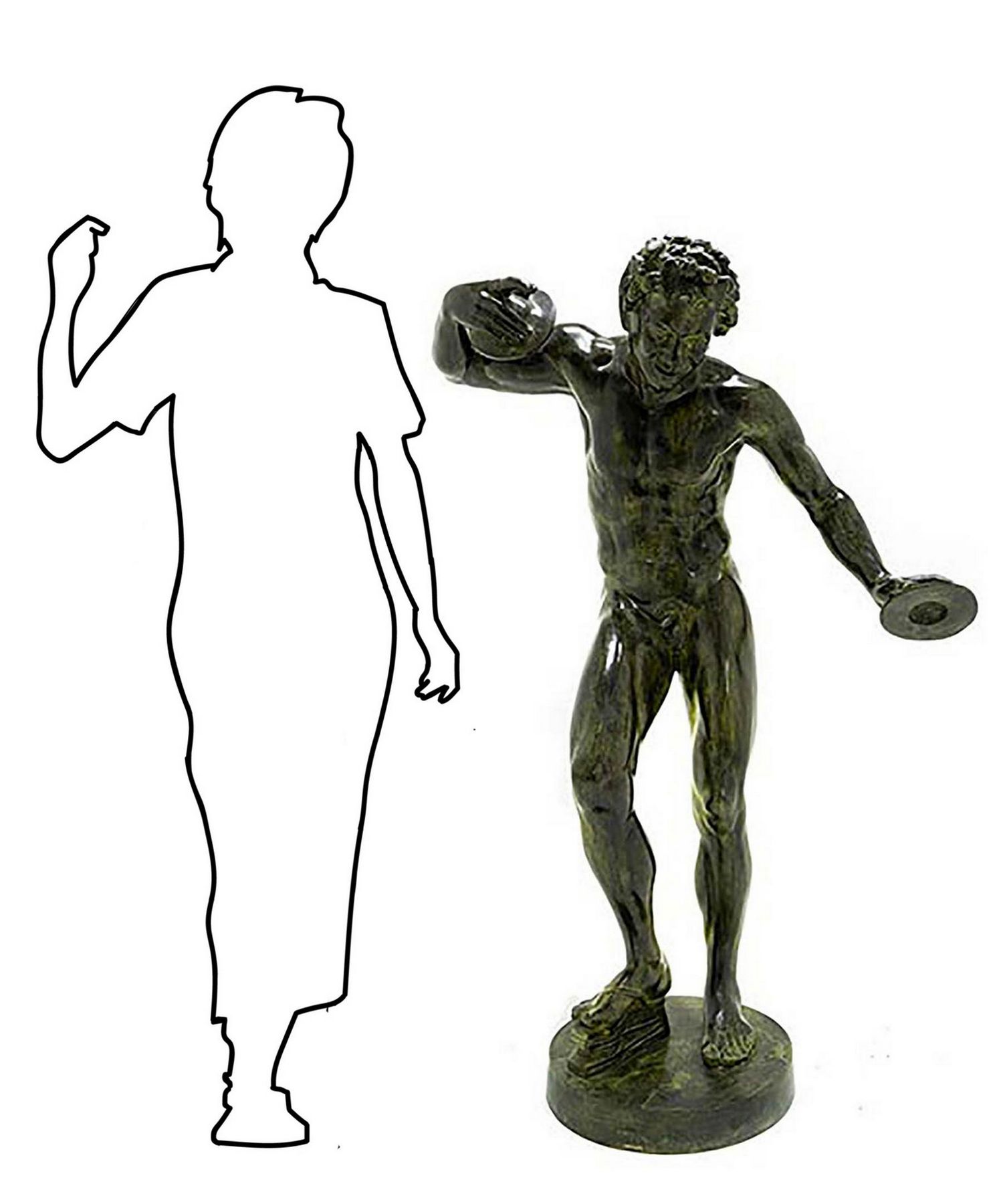 Scultura di Fauno danzante in bronzo, XIX-XX secolo, Italia, H cm 143. Copia da Prassitele (Grecia , IV secolo a.c.). Originale esposto presso la Galleria degli Uffizi di Firenze in marmo pario. H cm 143.