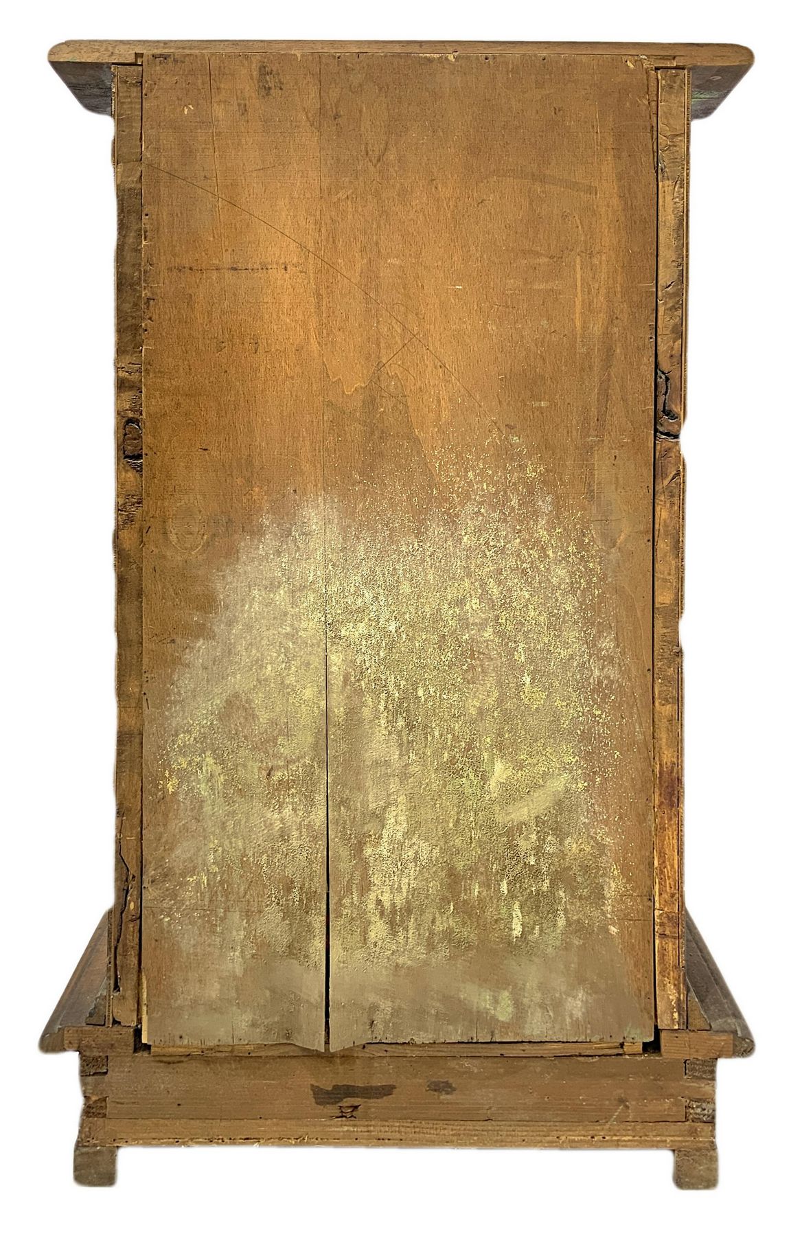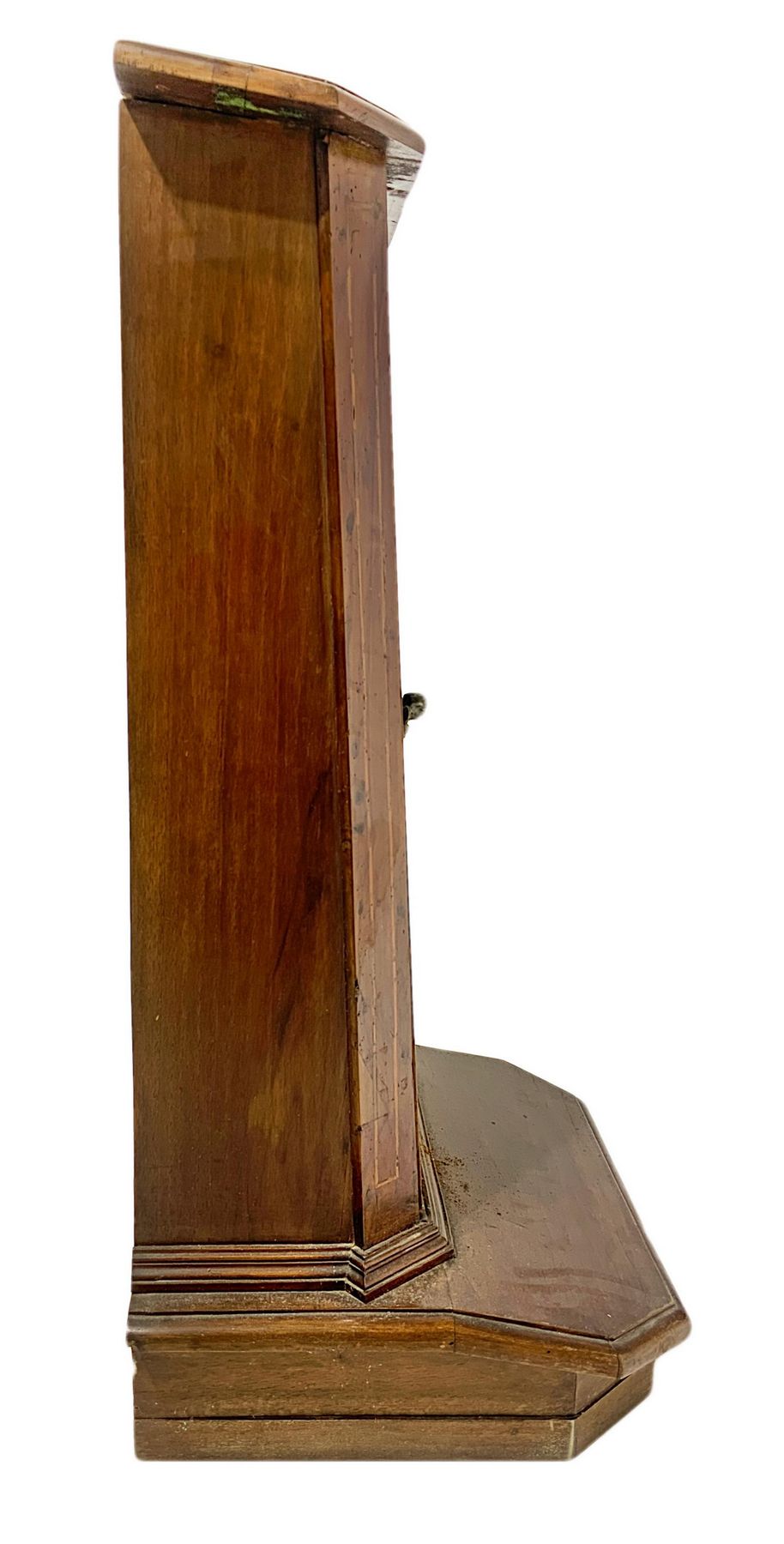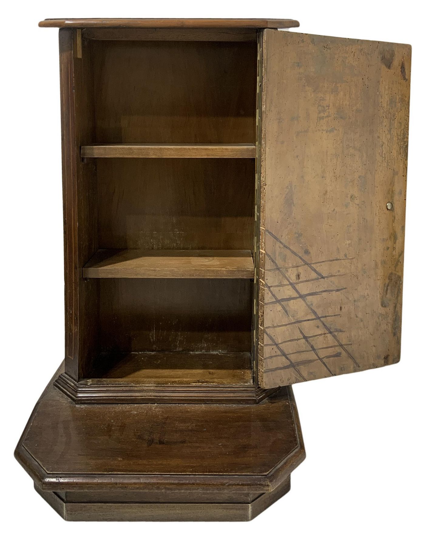 Inginocchiatoio contenitore in legno di noce, fine XIX secolo. Intarsi sul fronte. H cm 85 per 40