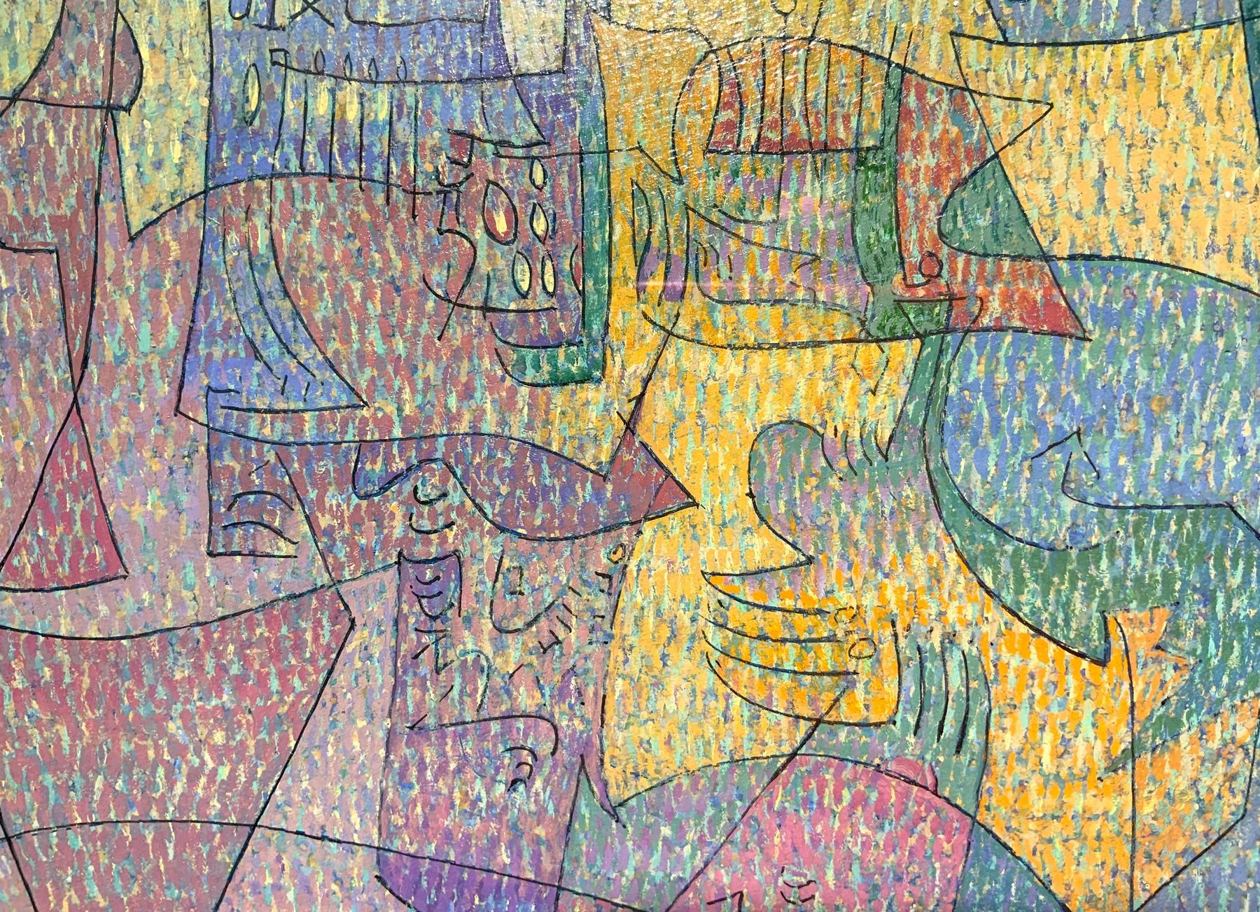 Dipinto ad olio su tavola, raffigurante composizione astratta di Vincenzo...
