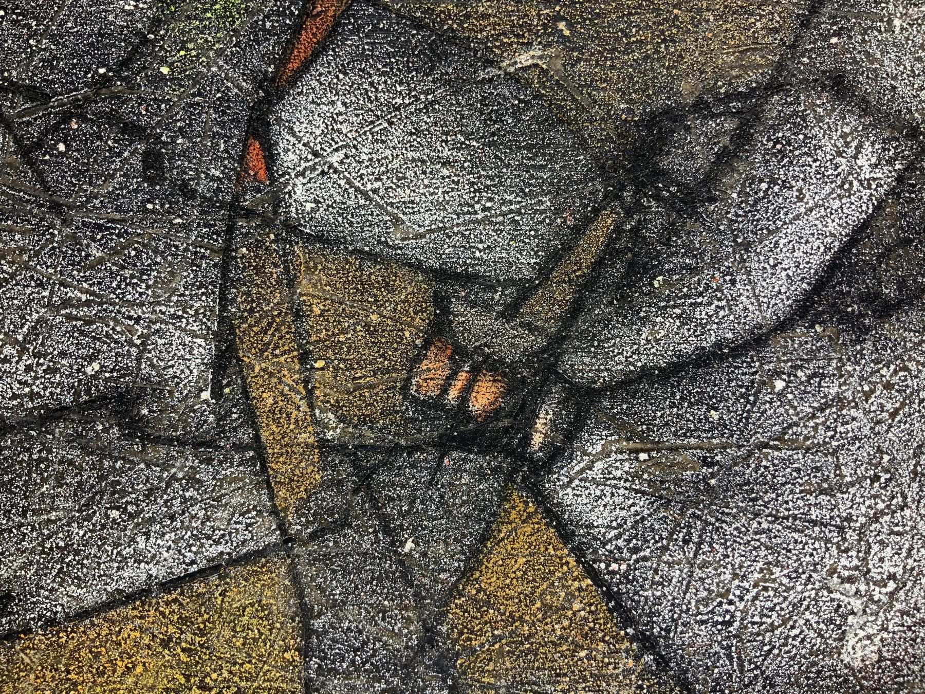 Dipinto ad olio su carta applicata su tela raff. composizione astratta...