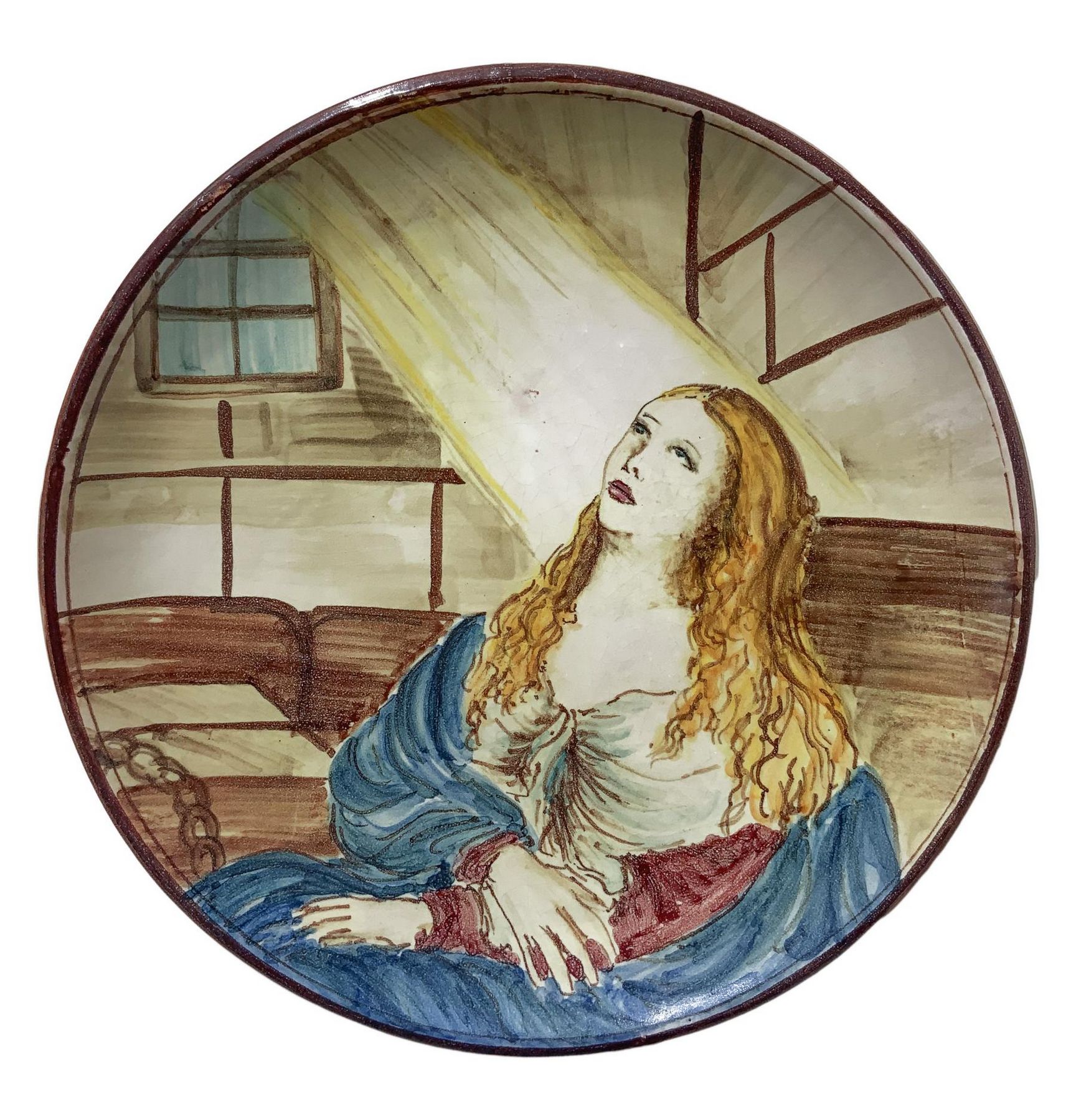 Piatto in maiolica raffigurante Sant’Agata in carcere, dipinto a mano....