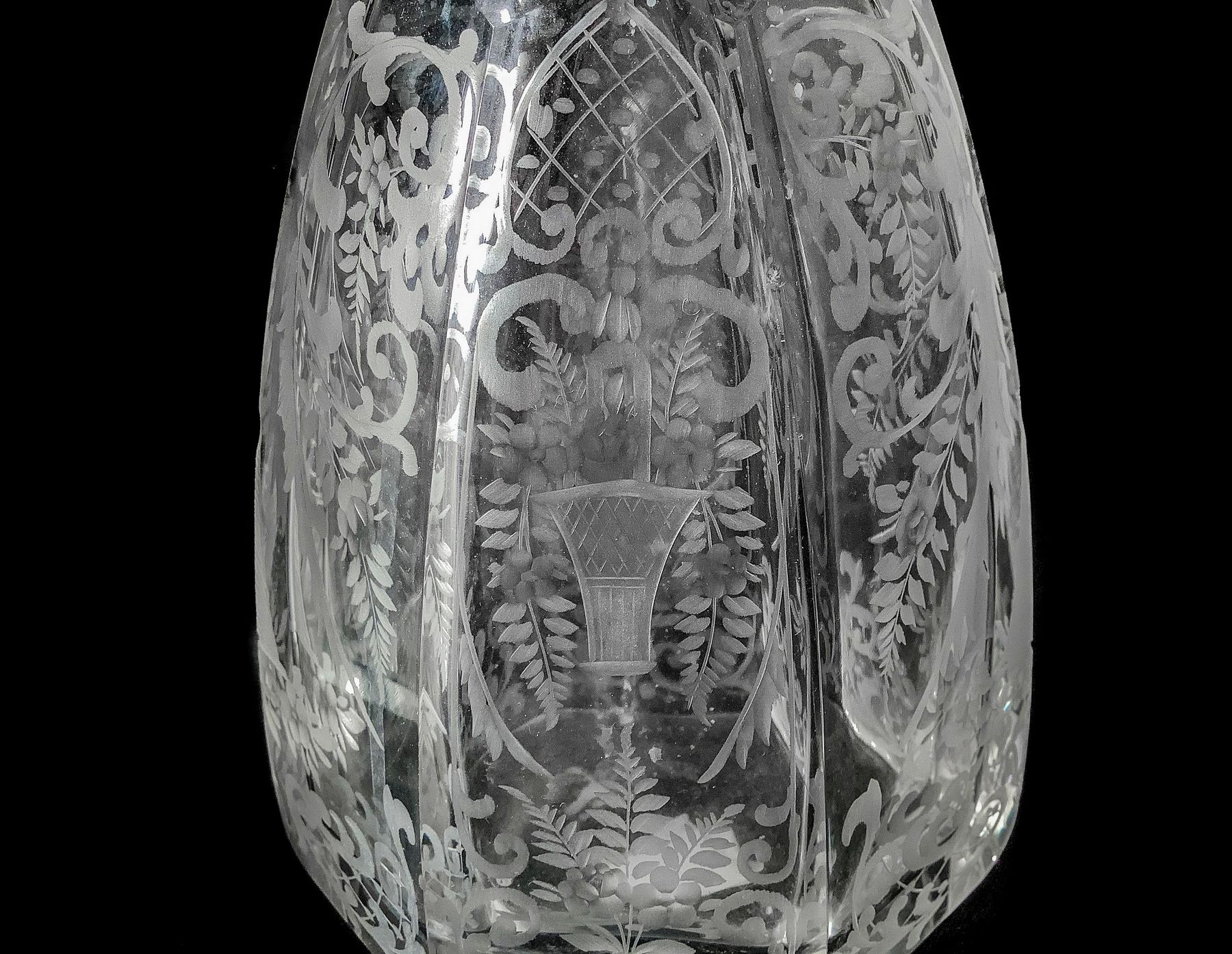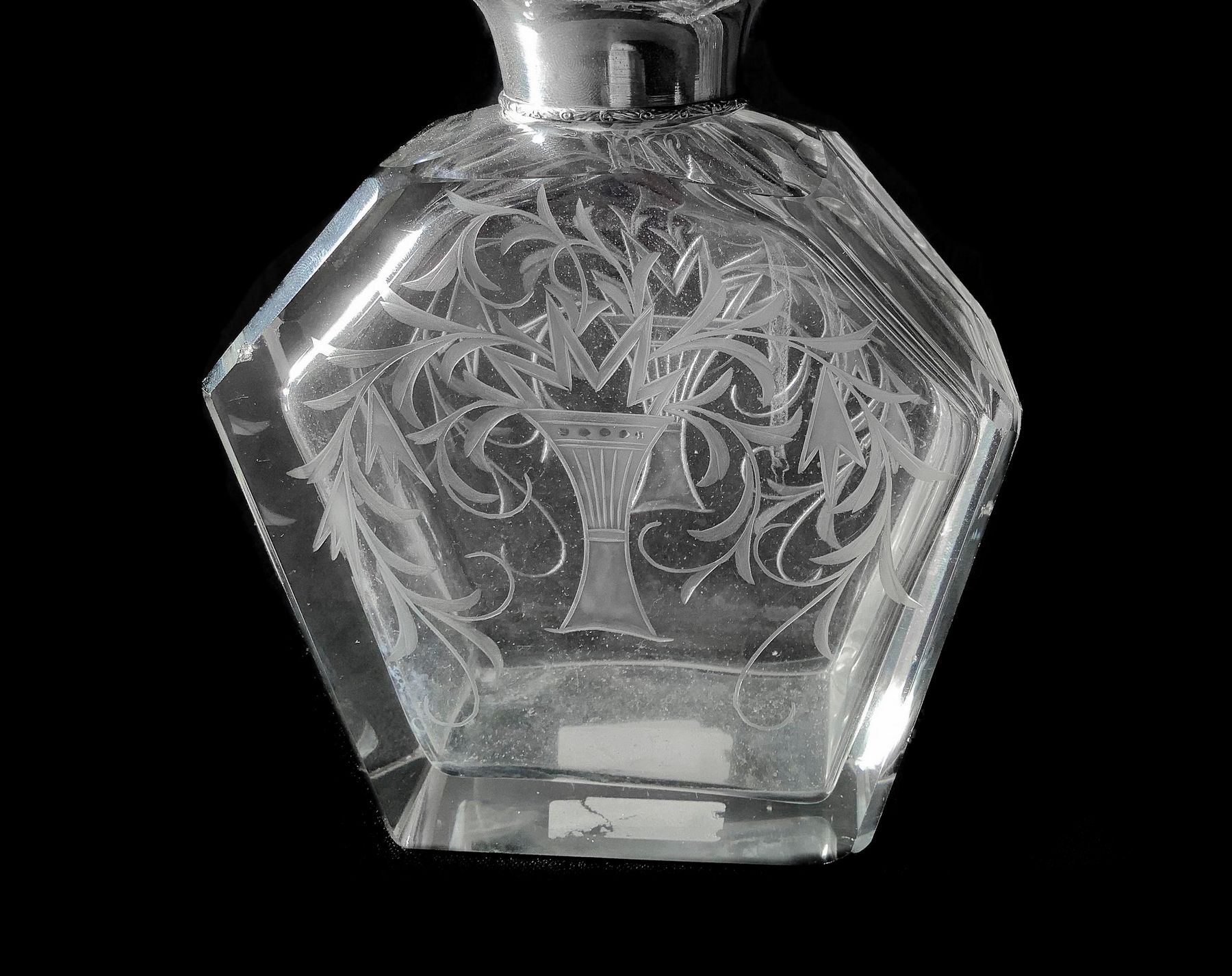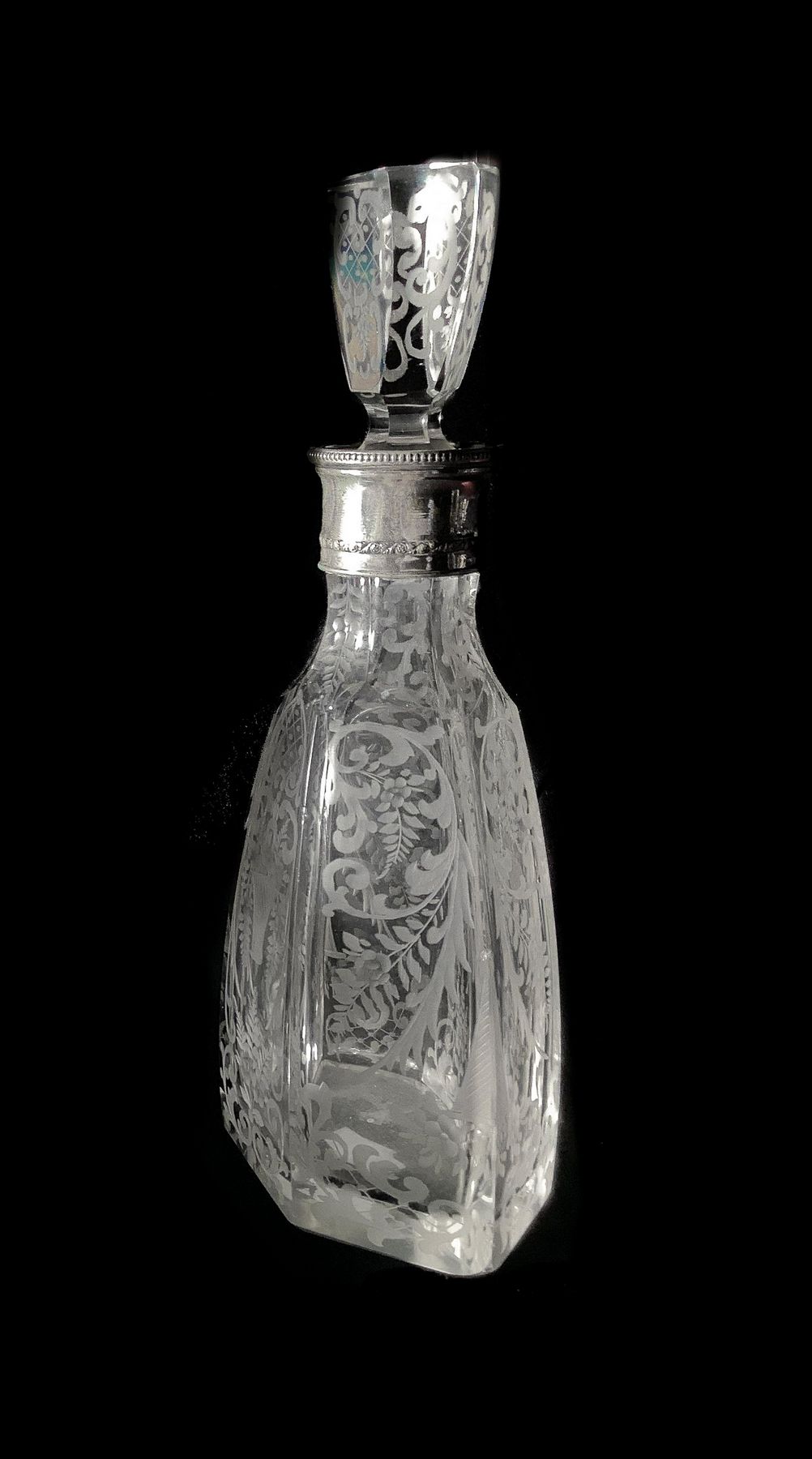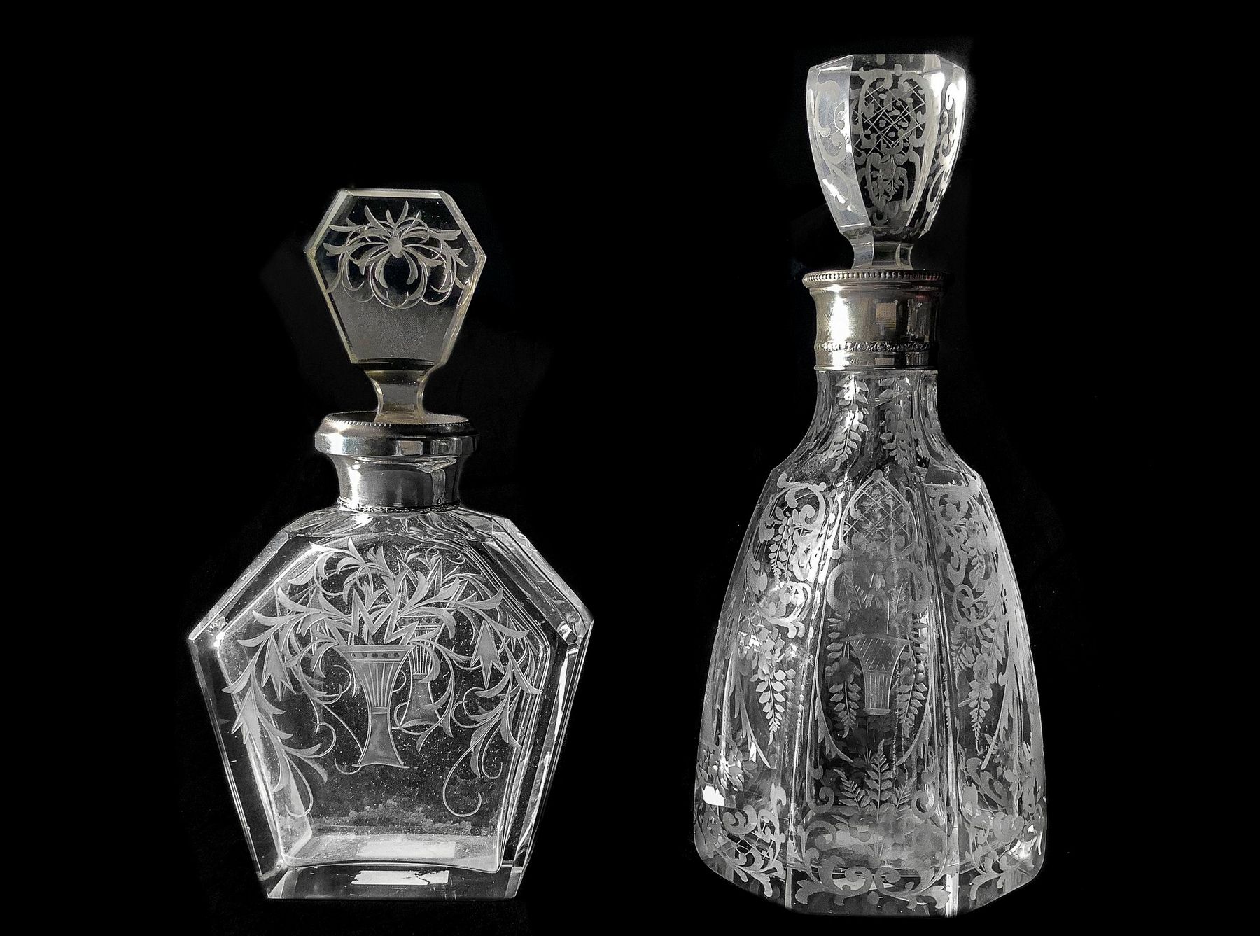 Lot 405 | N.2 Bottiglie da liquore bulinate con imboccatura in argento . XX secolo.