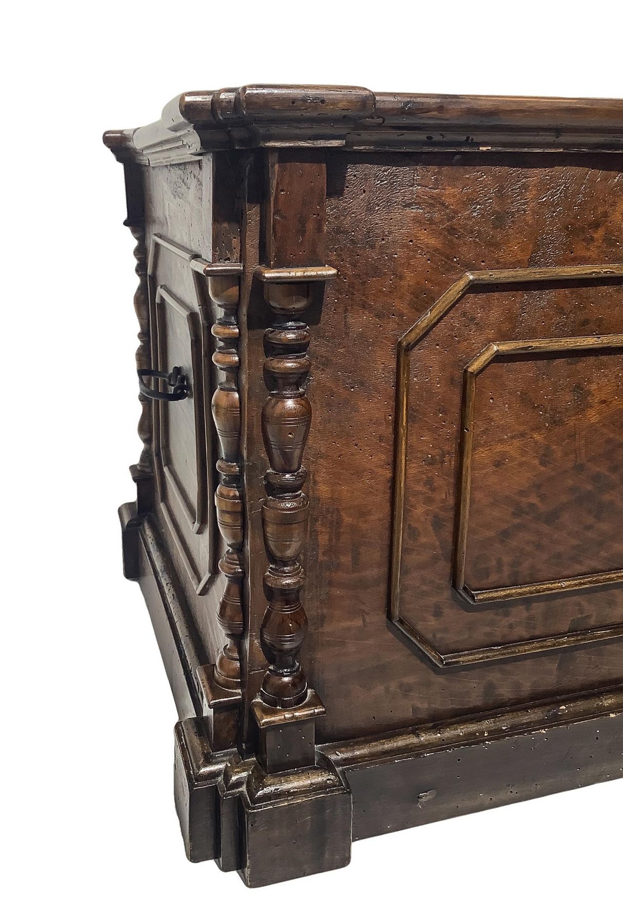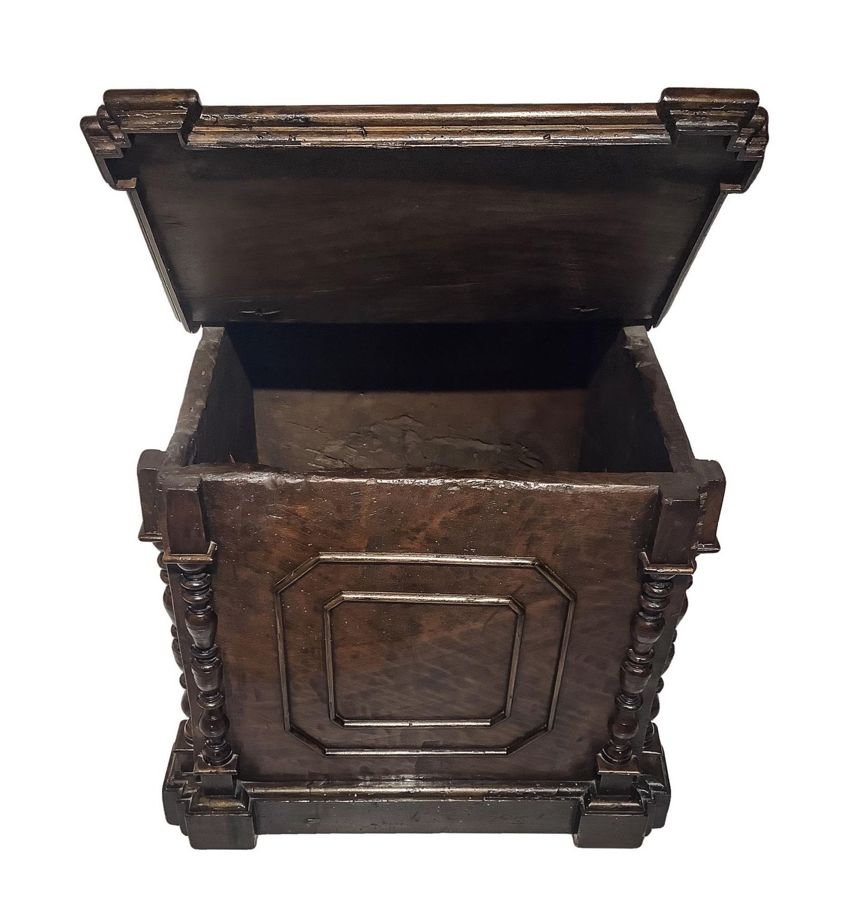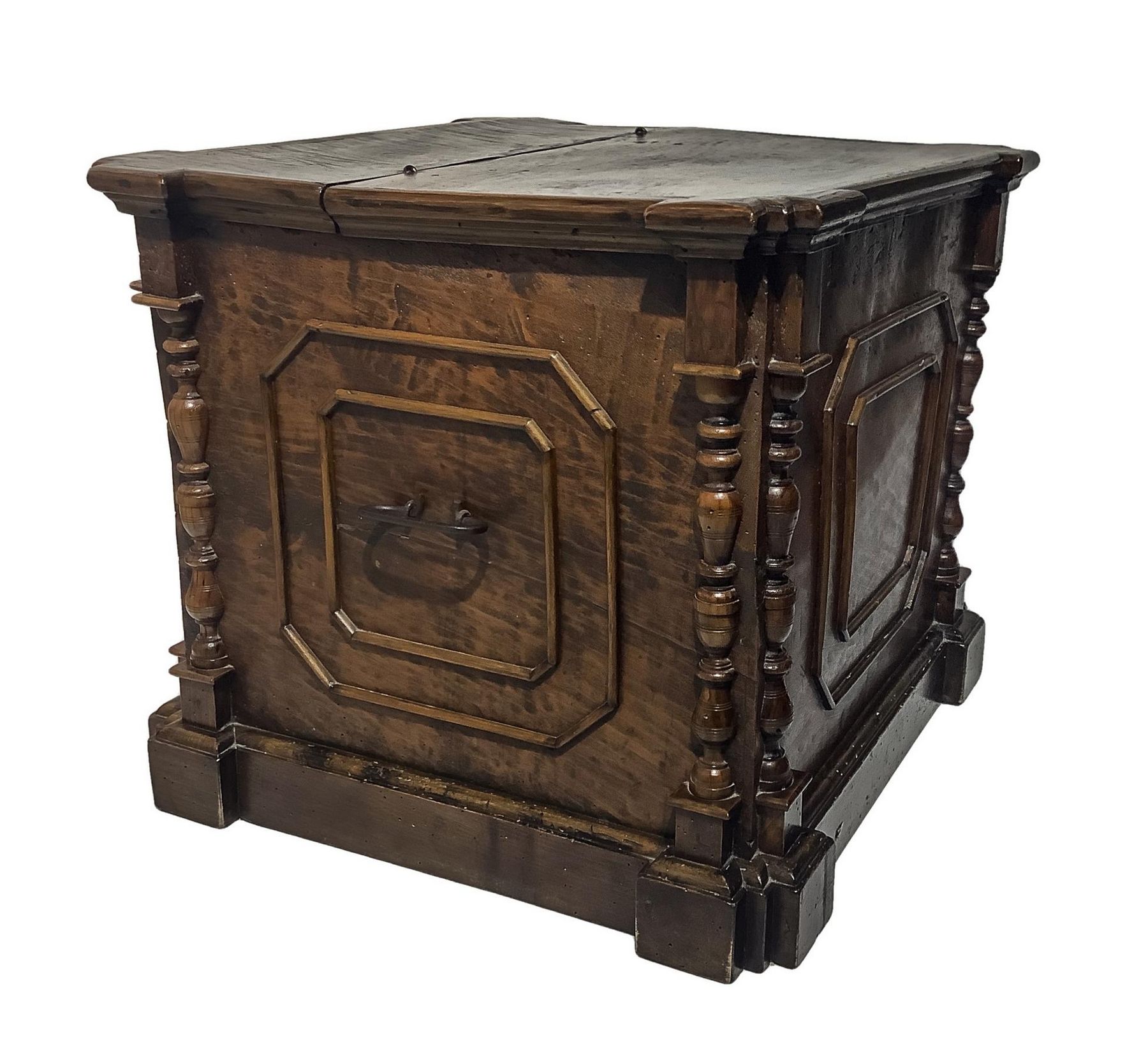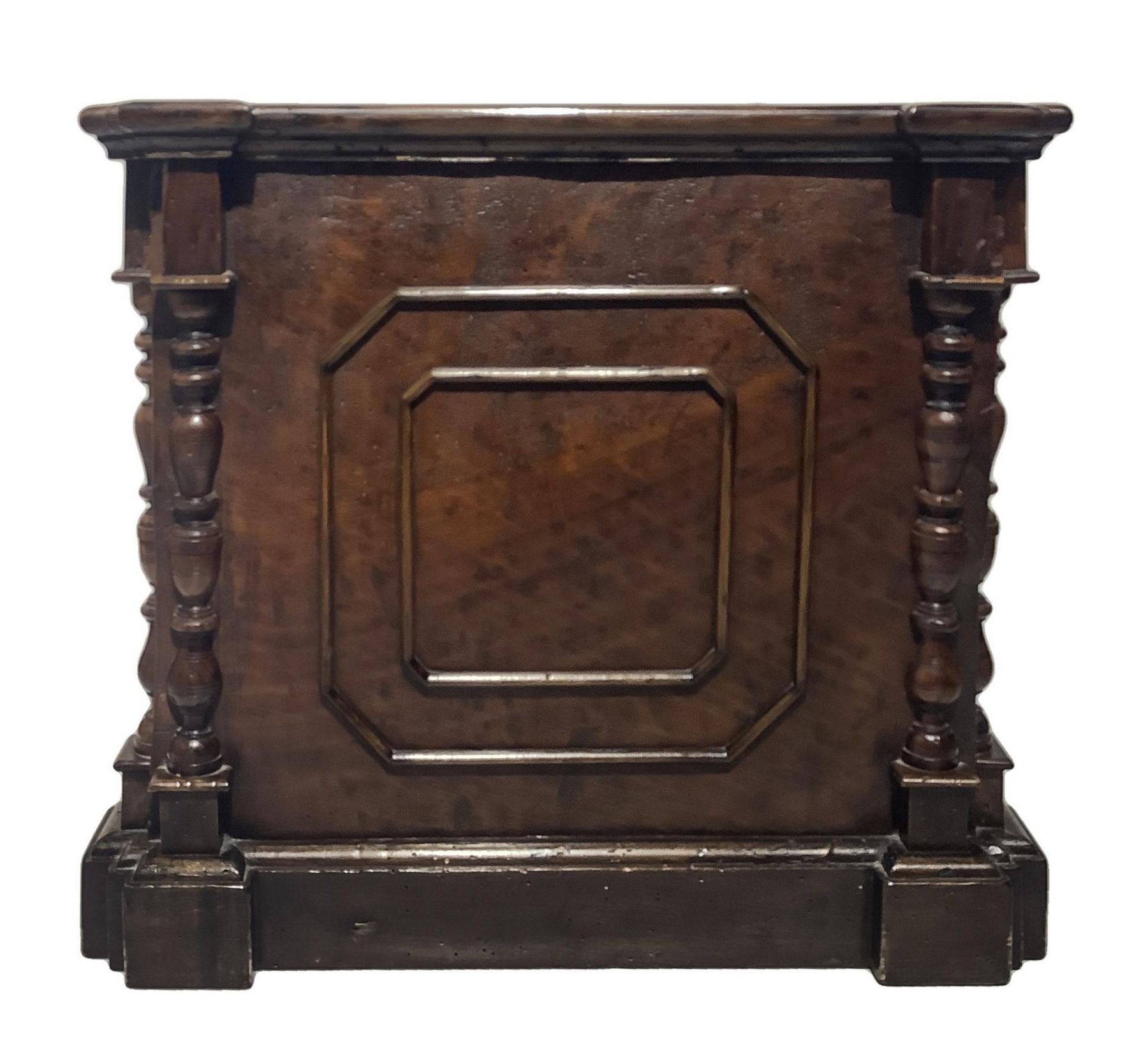 Mobile da sacrestia contenitore di ceri e candele , Sicilia XVIII secolo. In legno di noce con colonne intagliate ai lati e gangheri sul portello superiore. H cm 52. Cm 60x60.