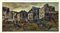 Olio su tavola raffigurante paesaggio con case, Nino Raciti (Catania, 1939). Cm 31x61,5
