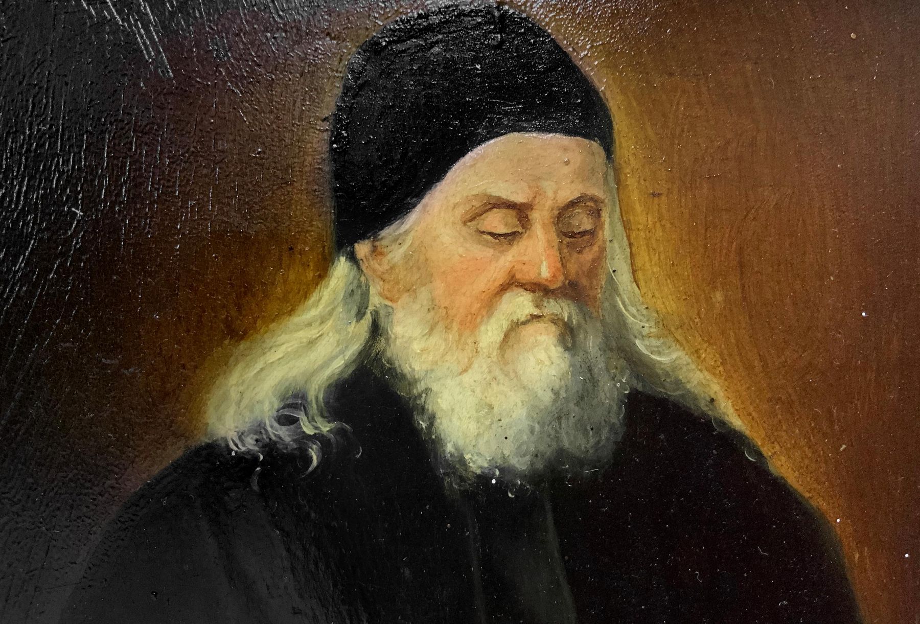 Dipinto ad olio su metallo raffigurante monaco con libro, Italia XIX secolo....