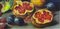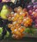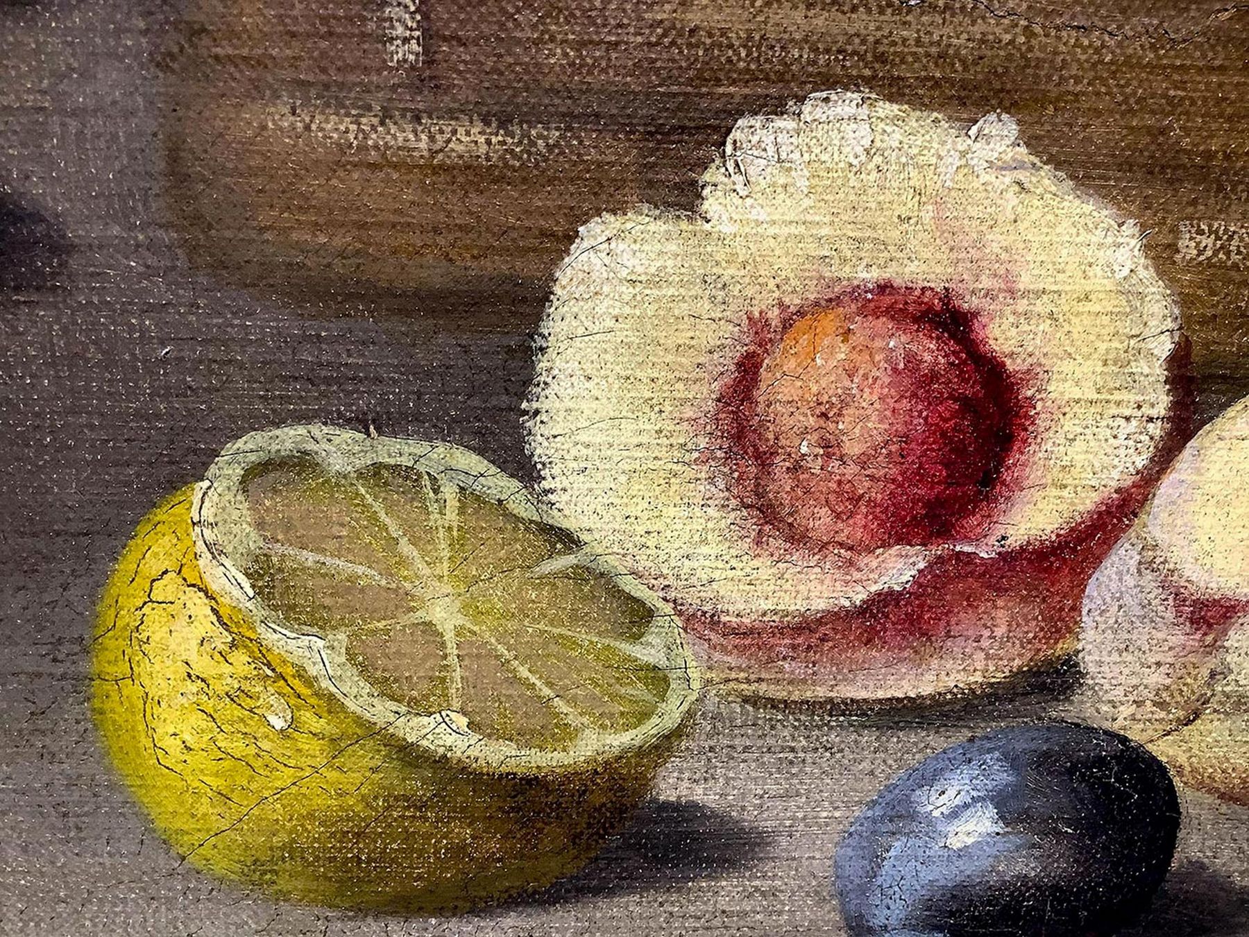 Dipinto ad olio su tela raffigurante natura morta di frutta e fiori, XX...