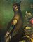 Dipinto ad olio su tela raffigurante natura morta di melograni con volatile....
