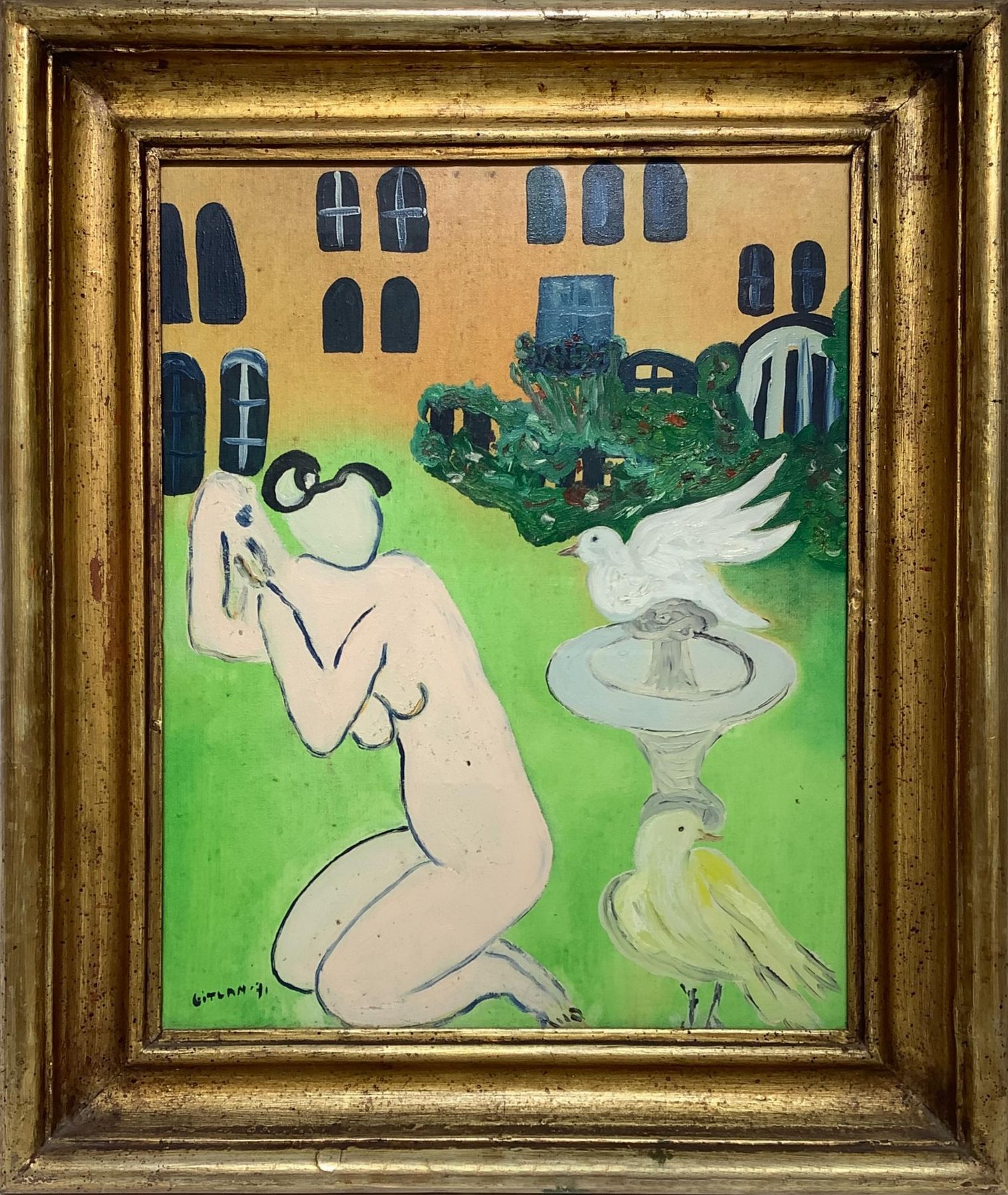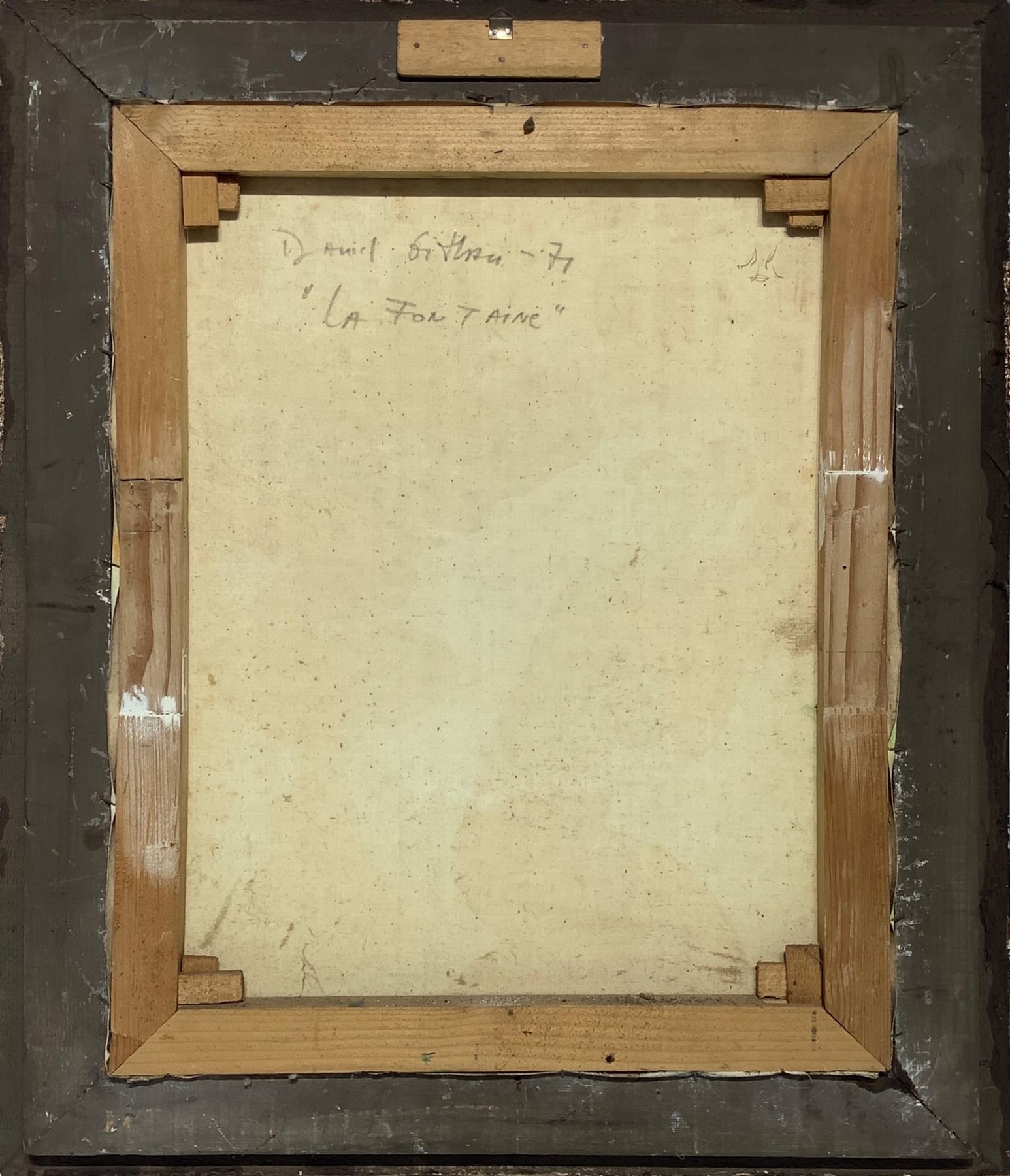 Dipinto ad olio su tela raffigigurante "La fontaine" . Firmato e datato in basso a sinistra e sul retro Daniel 71. Cm 52x40, con cornice cm 65x 55