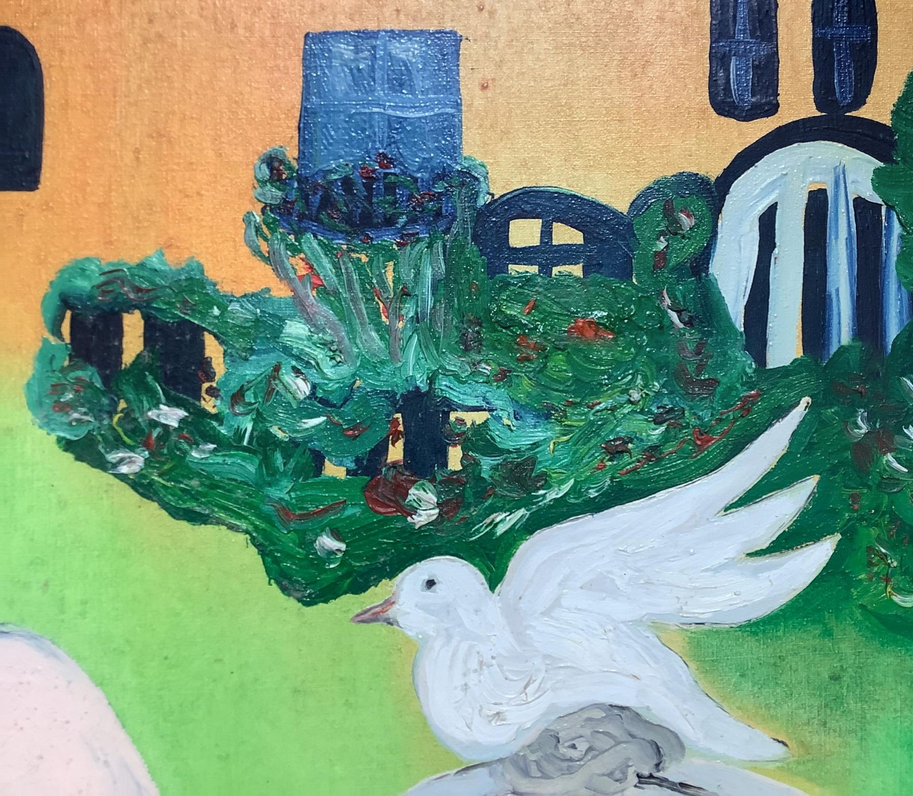 Dipinto ad olio su tela raffigigurante "La fontaine" . Firmato e datato in...
