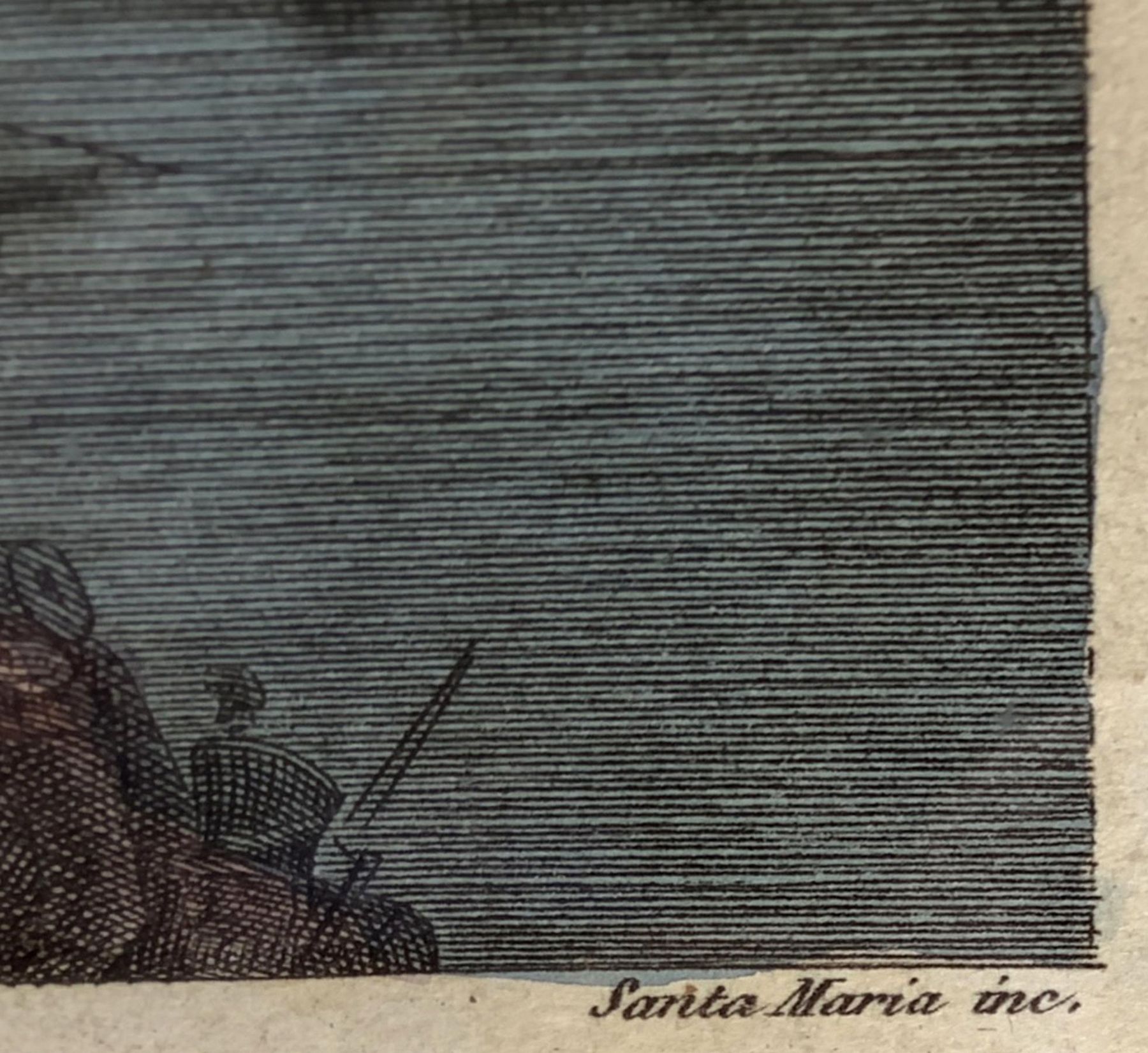 Incisione in bella cornice in legno dorato di SantaMaria, a colori...