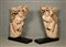 Firmato. Coppia di fregi in legno intagliato e laccato con personaggi. Cina. Inizi XX secolo. Mis. Lung. cm. 40 Alt. cm. 67 ca.