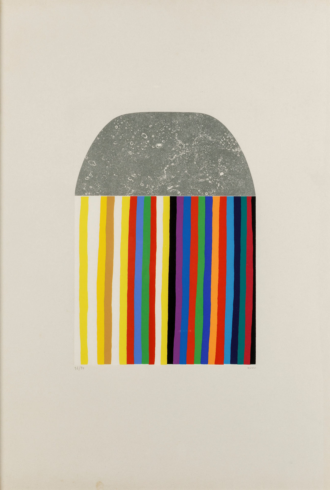 Alberto Burri (1915-1995), Acquaforte G, 1975, acquaforte e serigrafia su carta Fabriano, cm 35,3x25 firmata in basso a destra es. 32/90 Edizioni “Il Segnapassi, Pesaro” , Provenienza: Galleria d’Arte Russo, Roma Collezione privata, Roma Esposizioni: Pesaro 1976; Santa Barbara 1977-1978; New York 1980; Città di Castello (Esposizione permanente), Siena 1981; Amiens 1986; Ludwigs Hafen, Koln 1987; Bolzano 1988; Colonnella 1999; Reggio Emilia 2001-2002 Bibliografia: Burri. Unico e Multiplo, a cura di G. Agnisola M. Carlino, Edizioni Magonza, Città di Castello, 2014, p. 113, n. 20