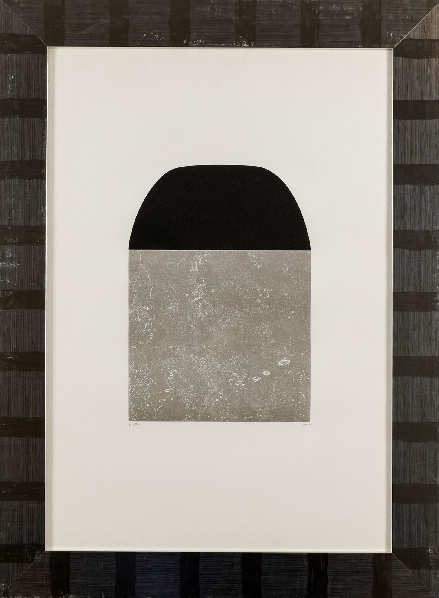 Alberto Burri (1915-1995), Acquaforte H, 1975, acquaforte su carta Fabriano, cm 35,3x25 firmata in basso a destra es. 32/90 Edizioni “Il Segnapassi, Pesaro”, Provenienza: Galleria d’Arte Russo, Roma Collezione privata, Roma Esposizioni: Pesaro 1976; Santa Barbara 1977-1978; New York 1980; Città di Castello (Esposizione permanente), Siena 1981; Amiens 1986; Ludwigs Hafen, Koln 1987; Bolzano 1988; Colonnella 1999; Reggio Emilia 2001-2002 Bibliografia: Burri. Unico e Multiplo, a cura di G. Agnisola M. Carlino, Edizioni Magonza, Città di Castello, 2014, p. 113, n. 20