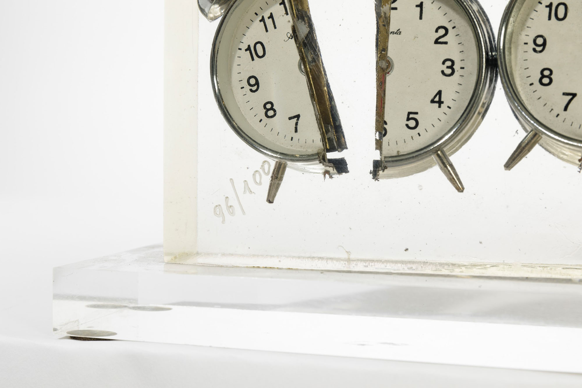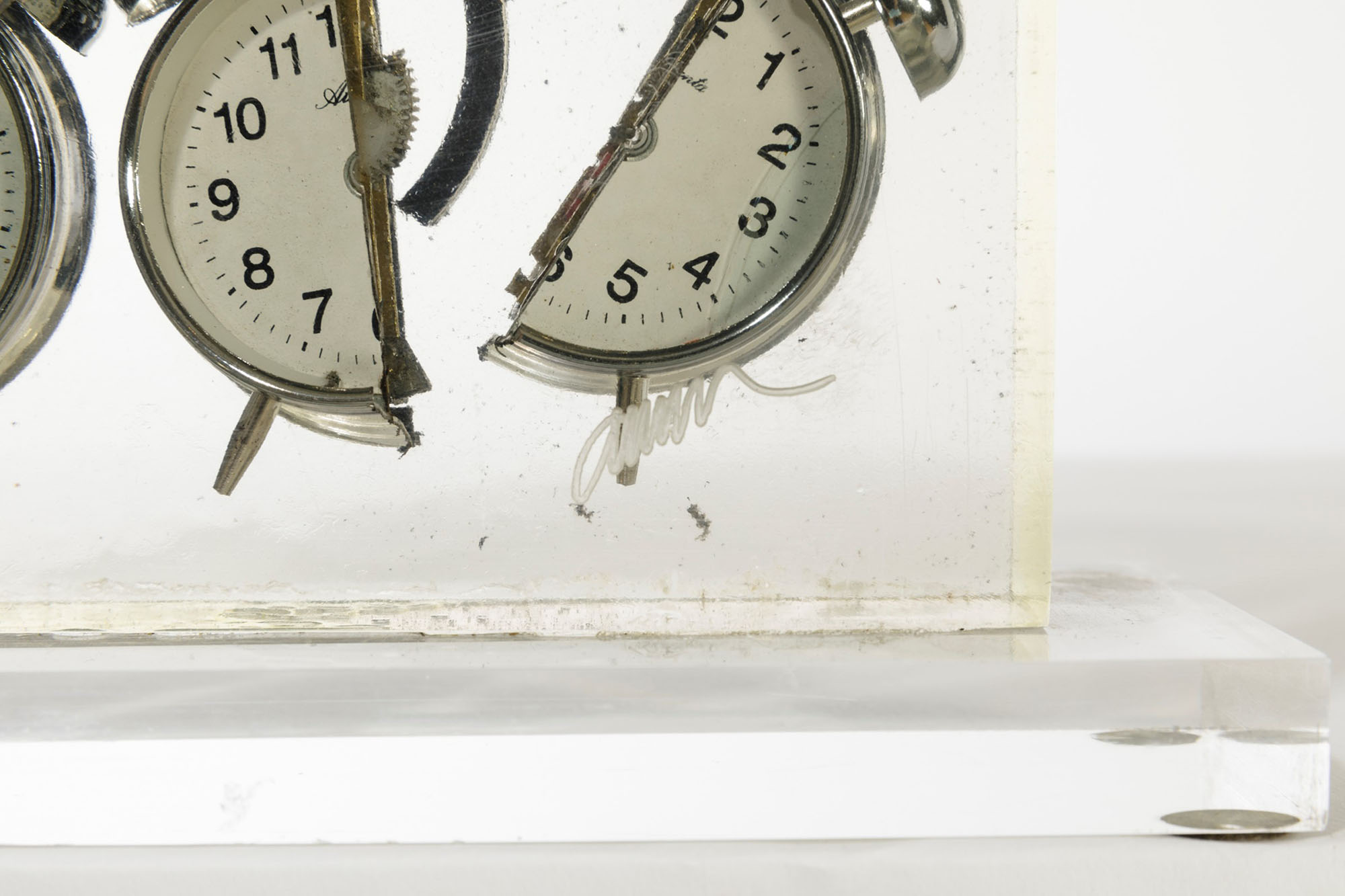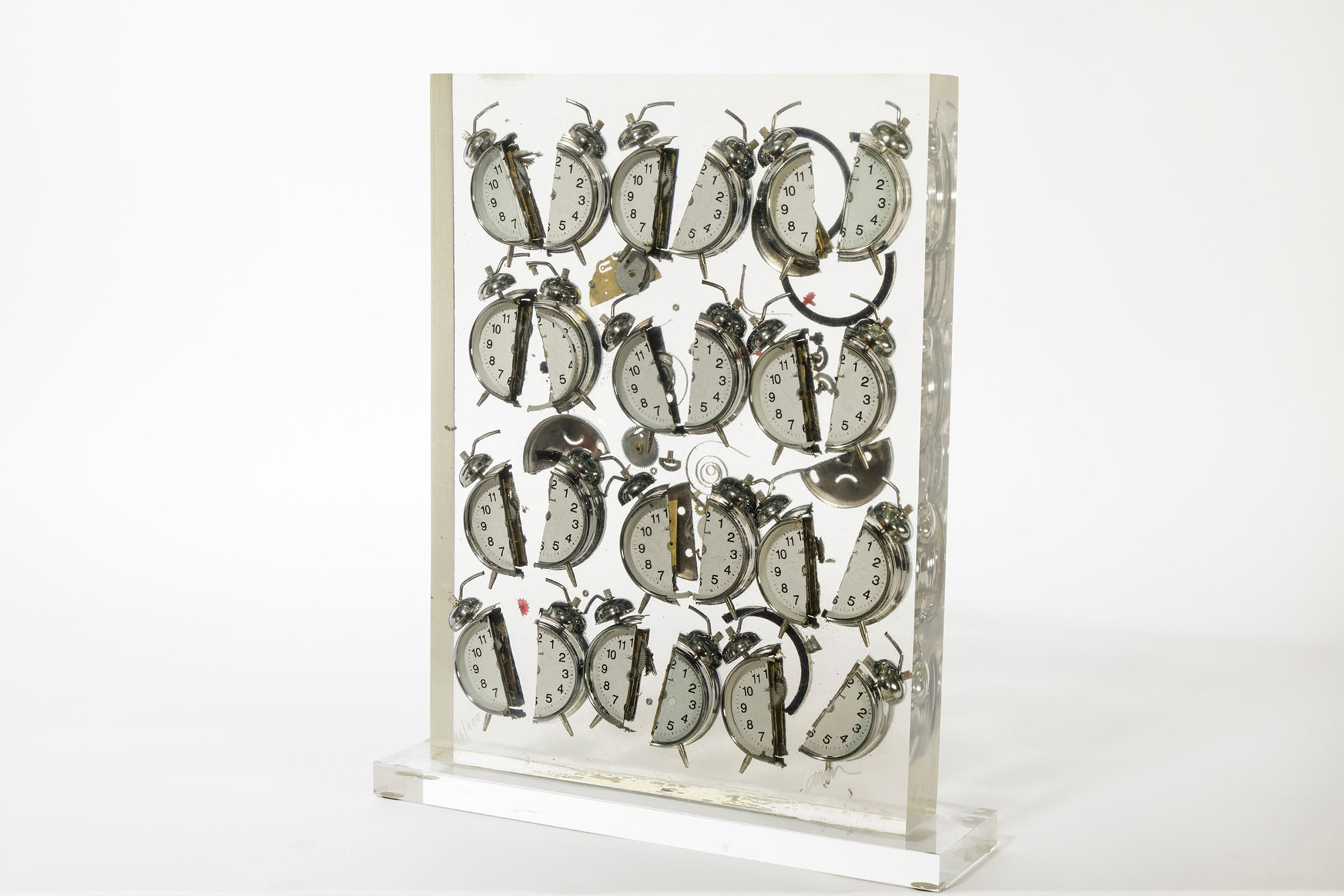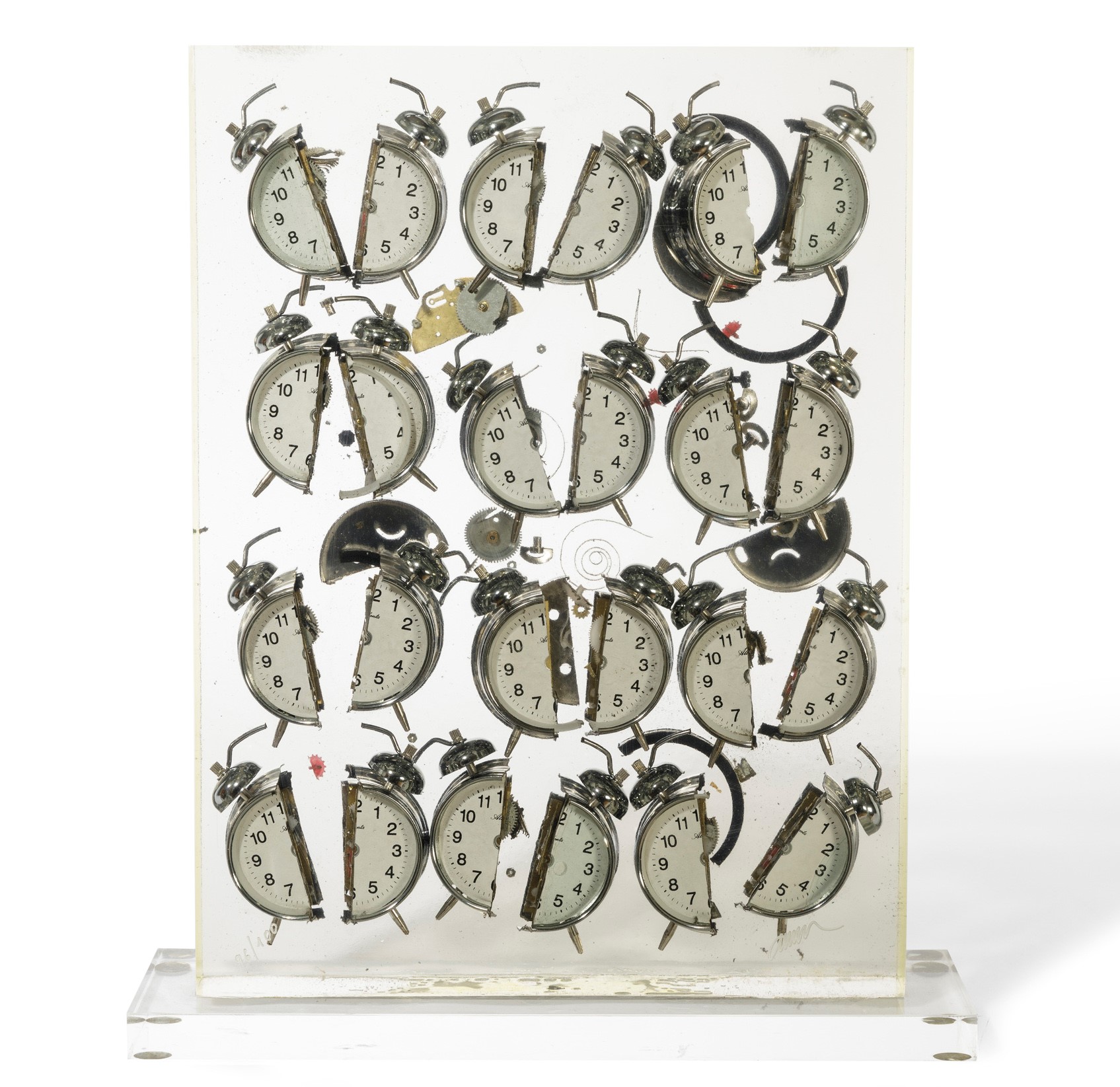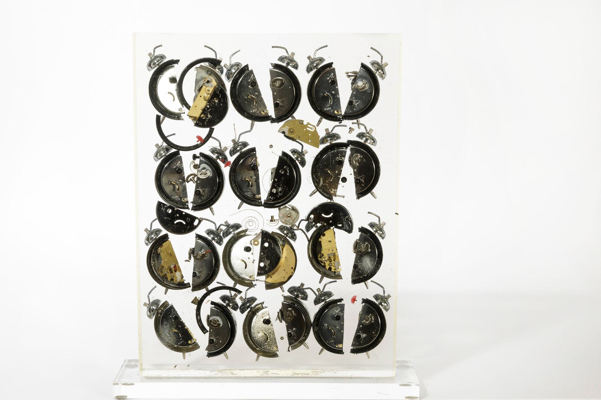 Fernandez Arman (1928-2005), Réveils, inclusione (de réveils dans plexiglas), cm 41,5x35 (con base), cm 39,4x30 firmato es. 96/100, Provenienza: Collezione privata, Milano