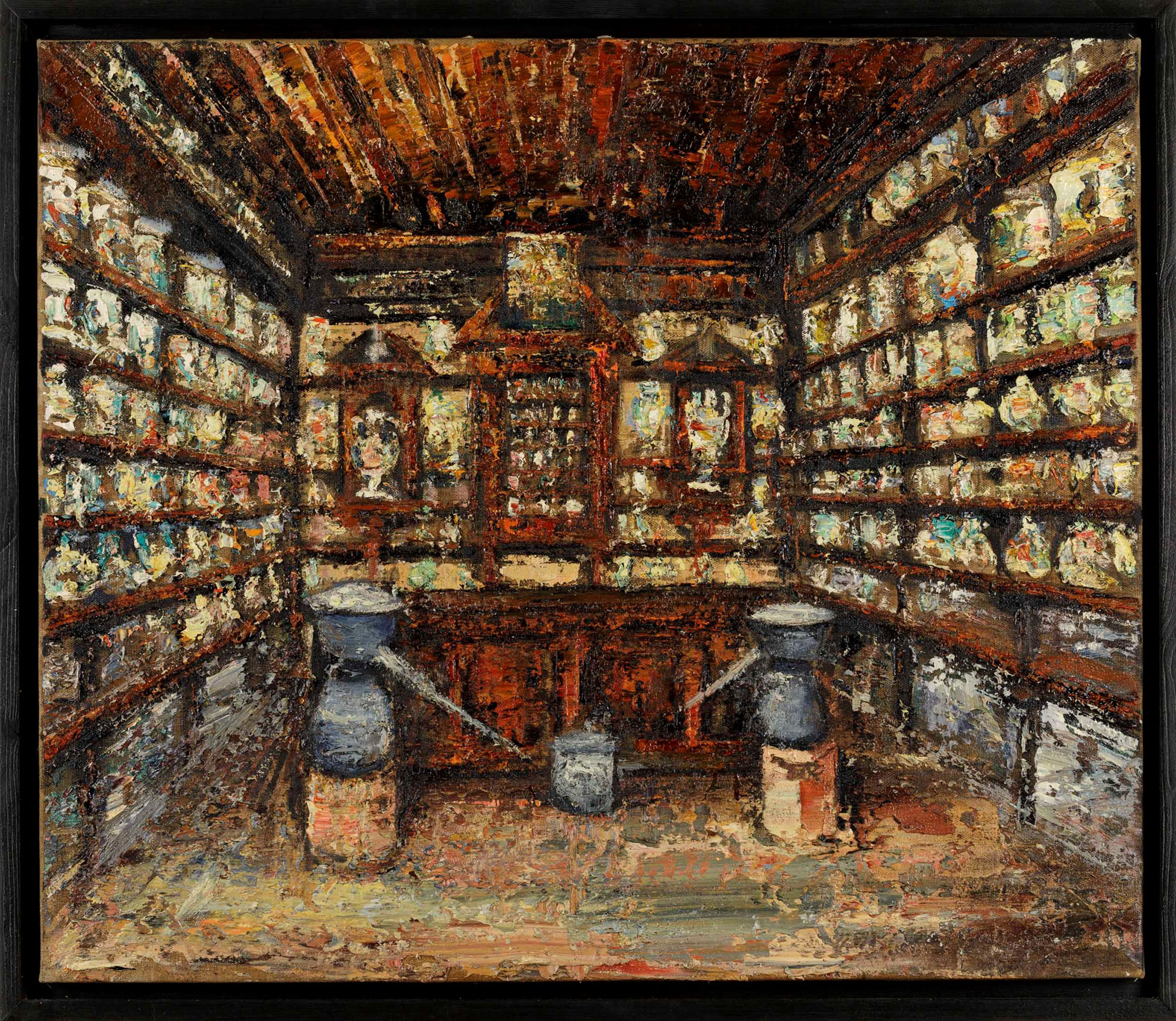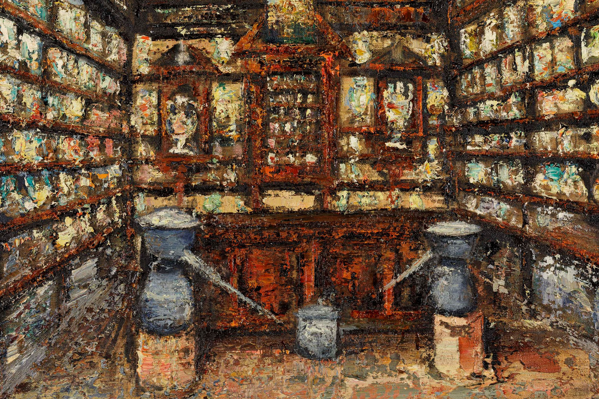 Massimo Giannoni (1954), Vecchia Farmacia, 2011, olio su tela, cm 60x70 firmato, intitolato e datato al retro, Provenienza: Galleria d’Arte Russo, Roma Collezione privata, Roma Esposizioni: Massimo Giannoni. Tutto in una stanza, Roma, Galleria Russo, 18 aprile – 16 maggio 2013 Bibliografia: Massimo Giannoni. Tutto in una stanza, catalogo della mostra, a cura di Lea Mattarella, Palombi Editori, Roma 2013
