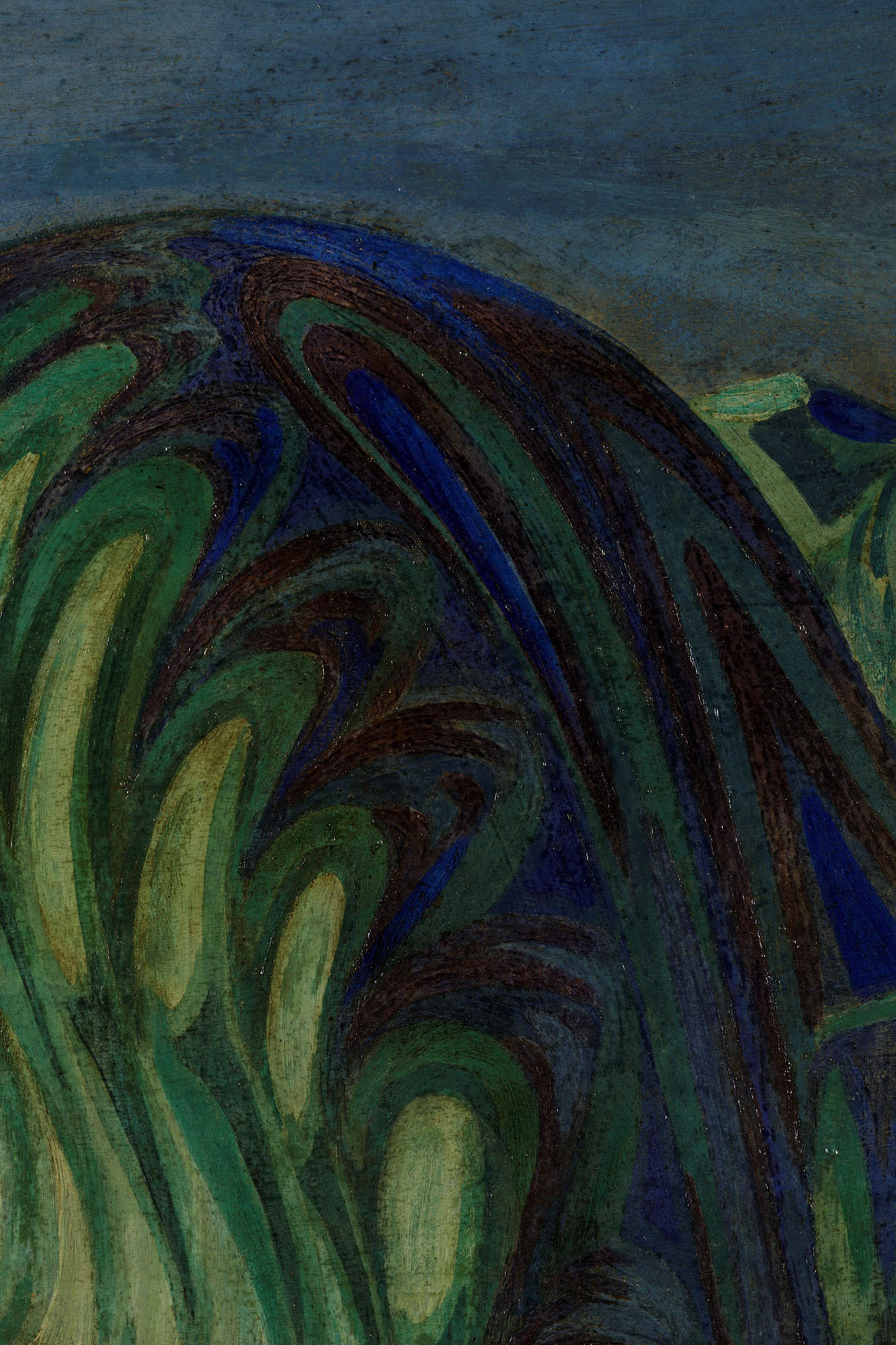 Cagnaccio di San Pietro (1897-1946), Velocità di luce - forza di un paesaggio”, 1915, olio su cartone applicato su tavola, cm 81,5x69 firmato in basso a sinistra Autentica su fotografia a cura della nipote Giuliana Chiozzi , Provenienza: Eredi dell’artista Collezione VAF Stiftung, Francoforte sul Meno