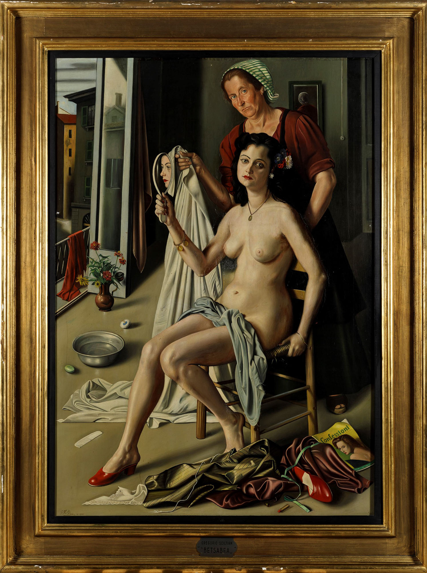 Gregorio Sciltian (1900-1985), Betsabea, 1953, oil on canvas, 160x112cm signed lower left "Sciltian op cxiv" label on the reverse of Palazzo dei Diamanti, Ferrara Provenance: Adele Vaselli collection, Roma Private collection, Milan Literature: Sciltian - Opera Omnia, curated by R.Civello, Hoepli Editore, 1986, illustrated on num. 92, published with wrong measures