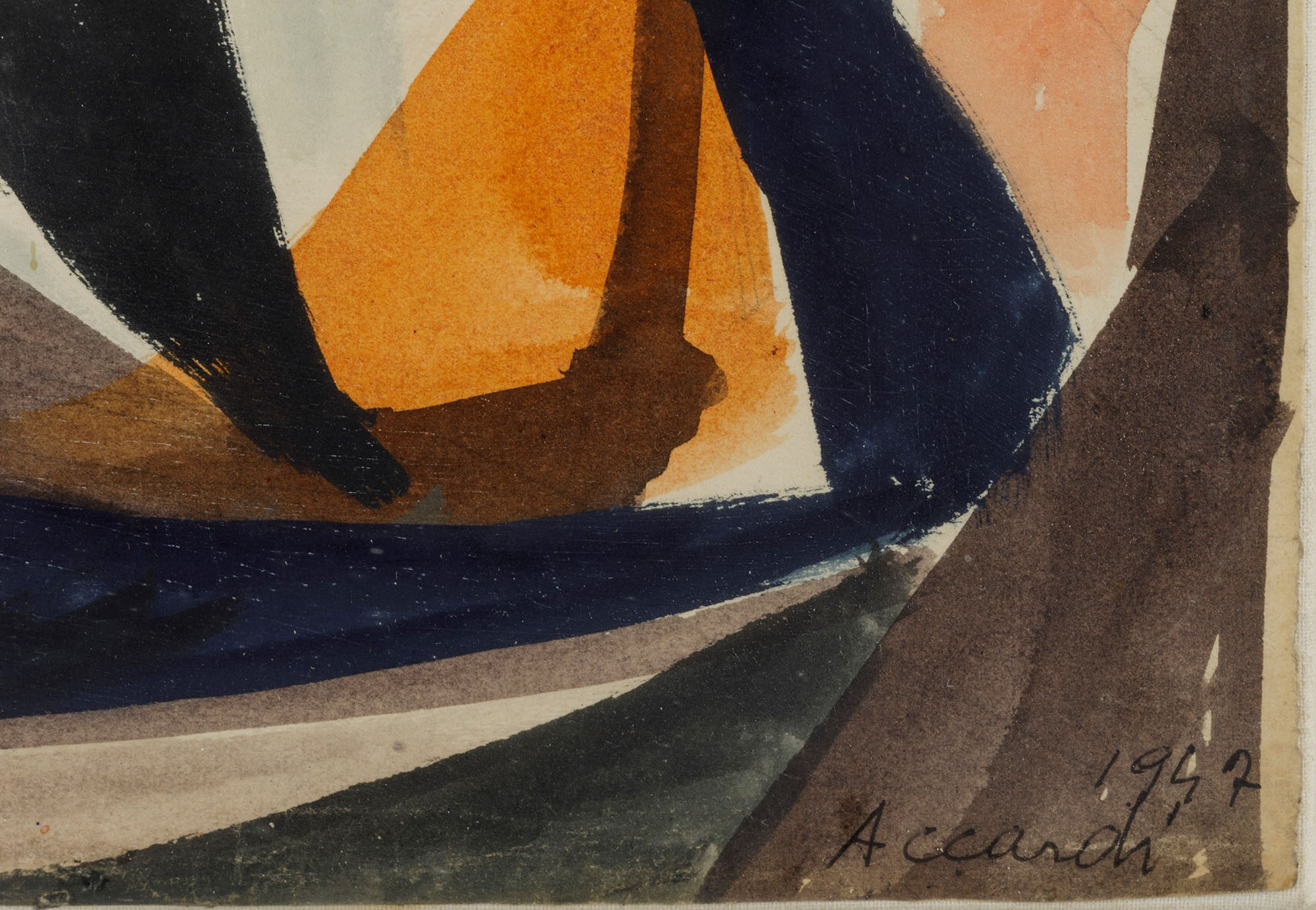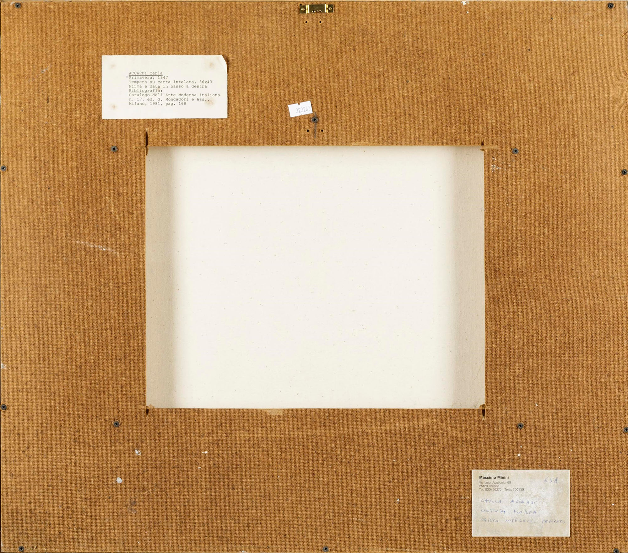 Carla Accardi (1924-2014), Primavera, 1947, tempera su carta intelata, cm 36x43 firmato e datato in basso a destra Etichetta al retro della Galleria Massimo Minini, Brescia, Bibliografia: Catalogo dell’Arte Moderna Italiana n. 17,G Mondadori e Ass., Milano, 1981, p. 168 Provenienza: Galleria Massimo Minini, Brescia Collezione privata, Iseo