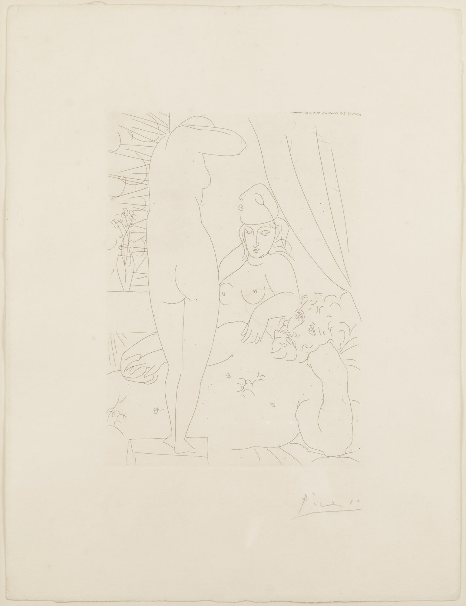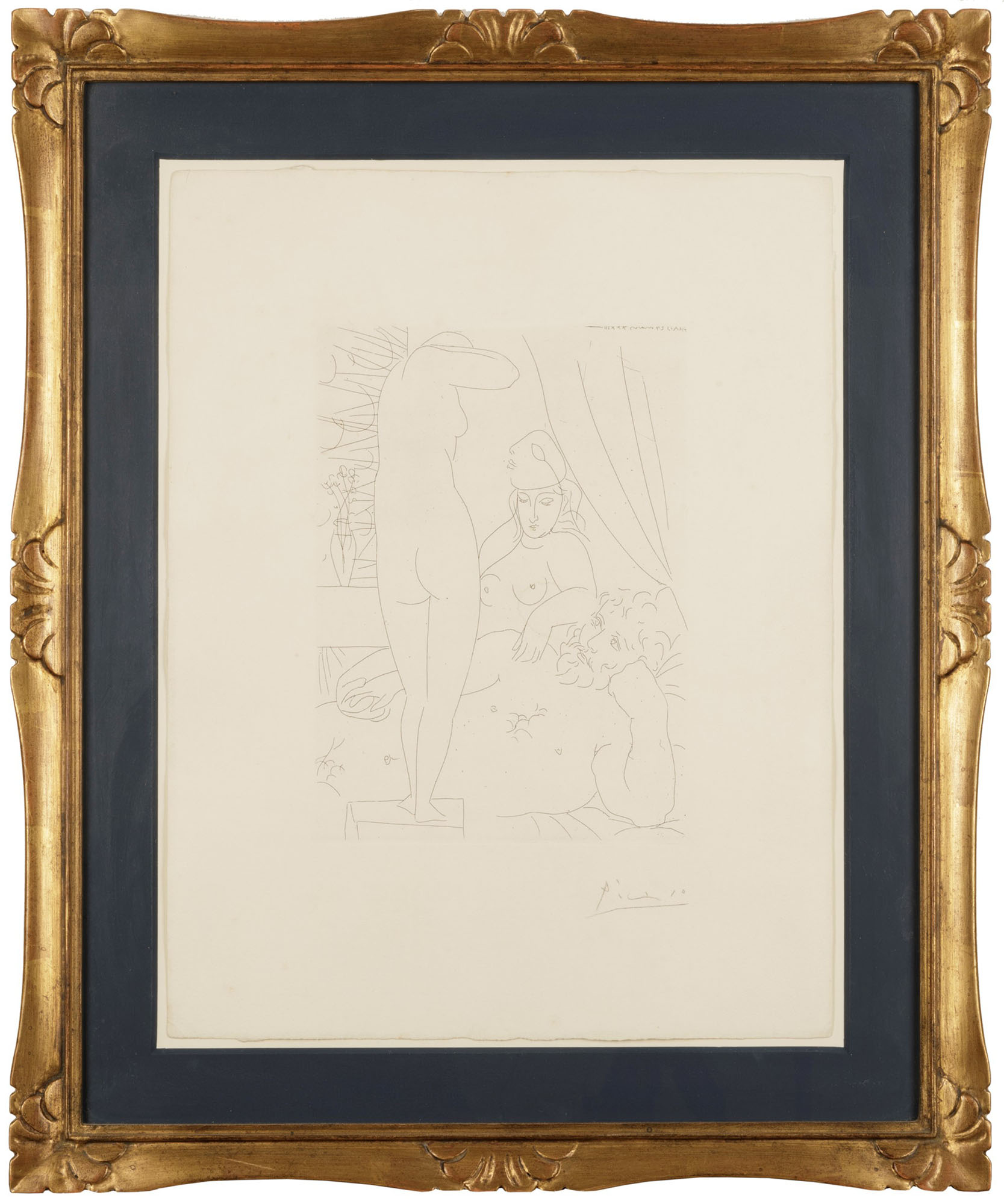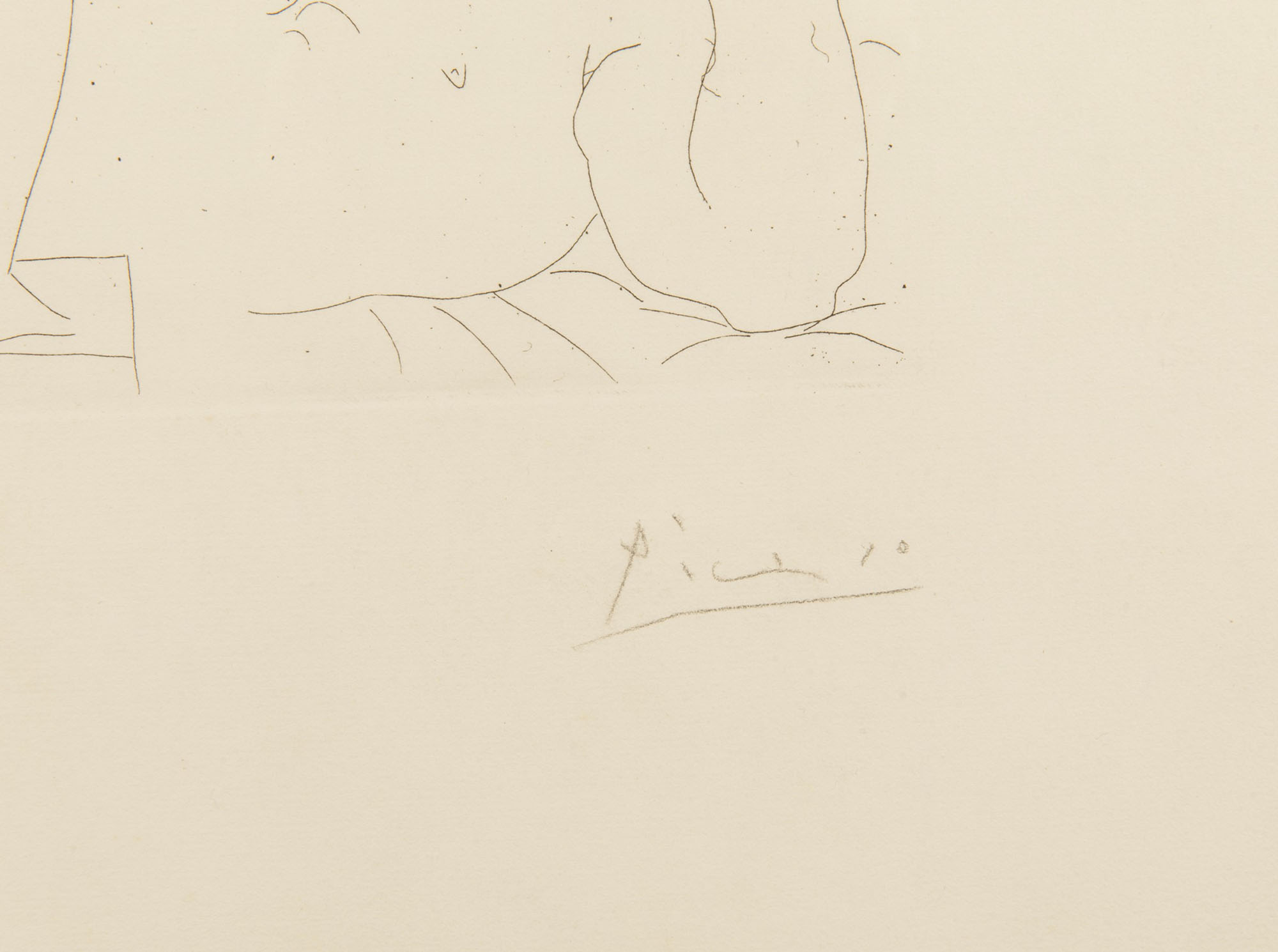 Pablo Picasso (1881-1973), Il riposo dello scultore, 1881- 1973, incisione su carta, cm 44x33,7 Parigi 29 Marzo 1933 Autentico nell’archivio generale della galleria d’arte “Il castello” s.r.l Milano