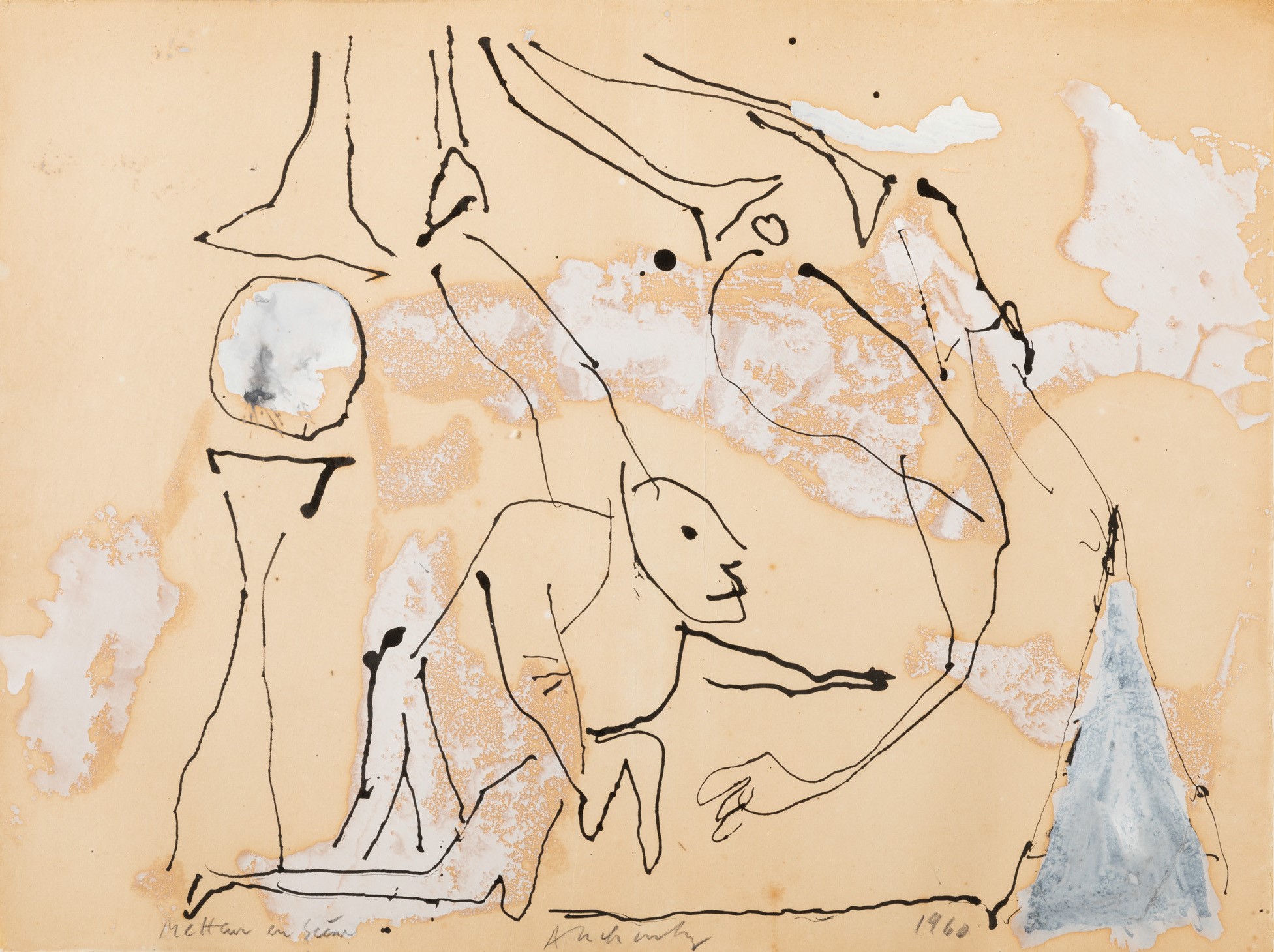 P. Alechinsky, Metteur en scene, 1960, Pierre Alechinsky (1927). Mixed technique on paper. 50x38cm. Signed and dated Exhibitions: Galleria Il Punto Arte Moderna, Torino, 1964, ripr. a catalogo in b/n fig. 5