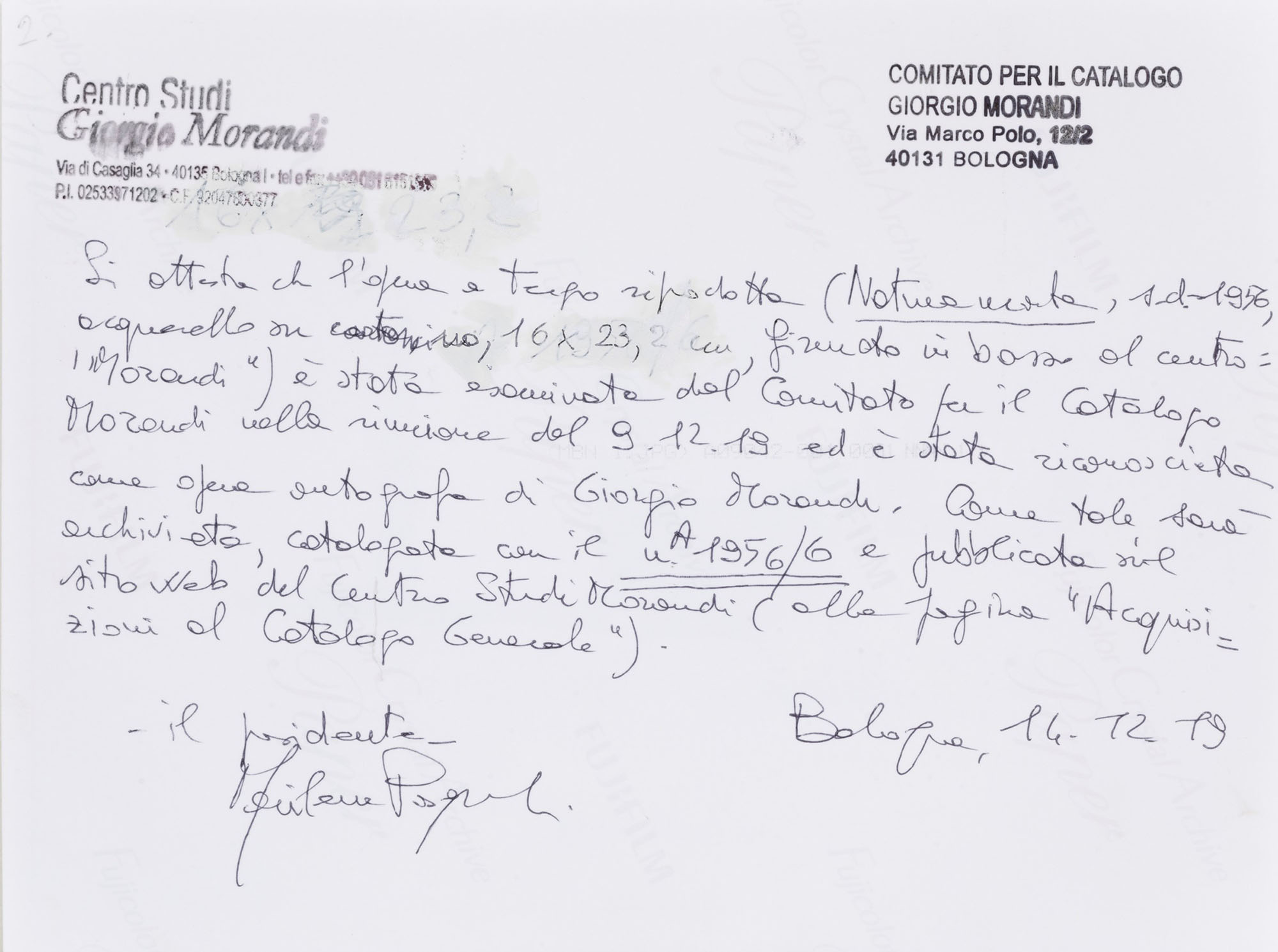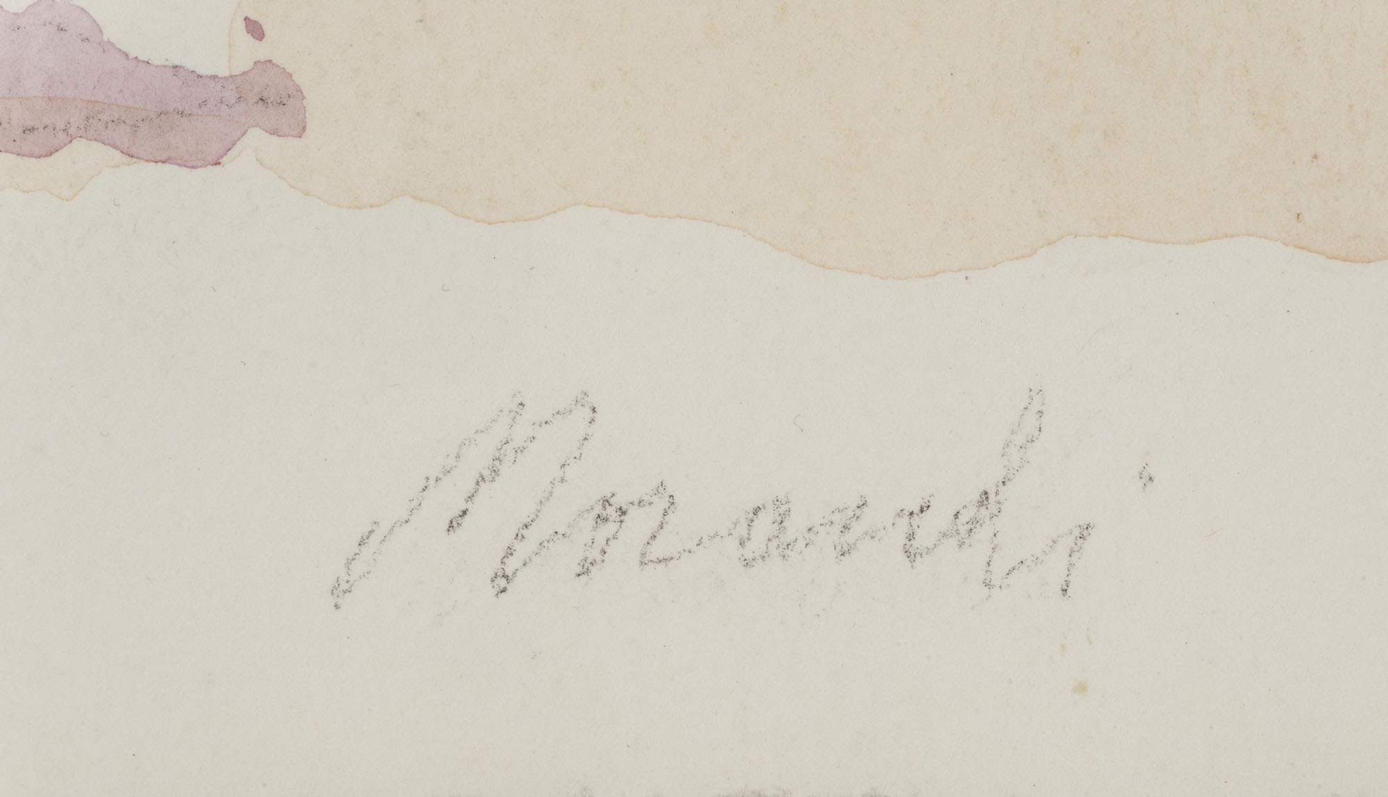 Giorgio Morandi (1890-1964), Natura morta, s.d. 1957, watercolor on cardboard, 16x23,2cm signed in pencil Work registered at Il Centro Studi Giorgio Morandi, Bologna, under the n. A1957/6, on 9 December 2019, and published on Centro Studi website (page “Nuove acquisizioni al Catalogo Generale”) Provenance: Galleriaforma, Genoa Paolo Minetti collection, Genoa