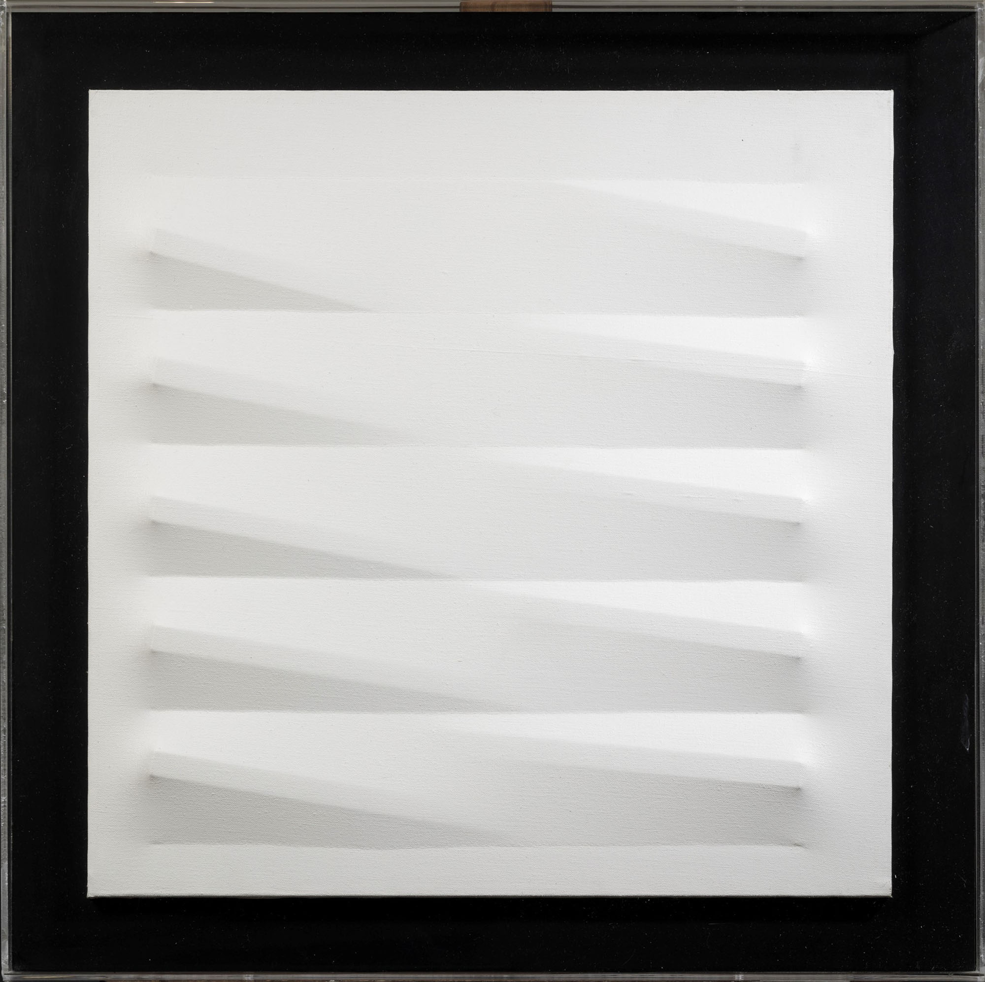 Agostino Bonalumi (1935-2013), Bianco, senza data - fine anni '70, tela estroflessa e tempera vinilica, cm 50x50 firmato al retro Opera registrata presso l'Archivio Agostino Bonalumi, Milano, con il n. S01-016