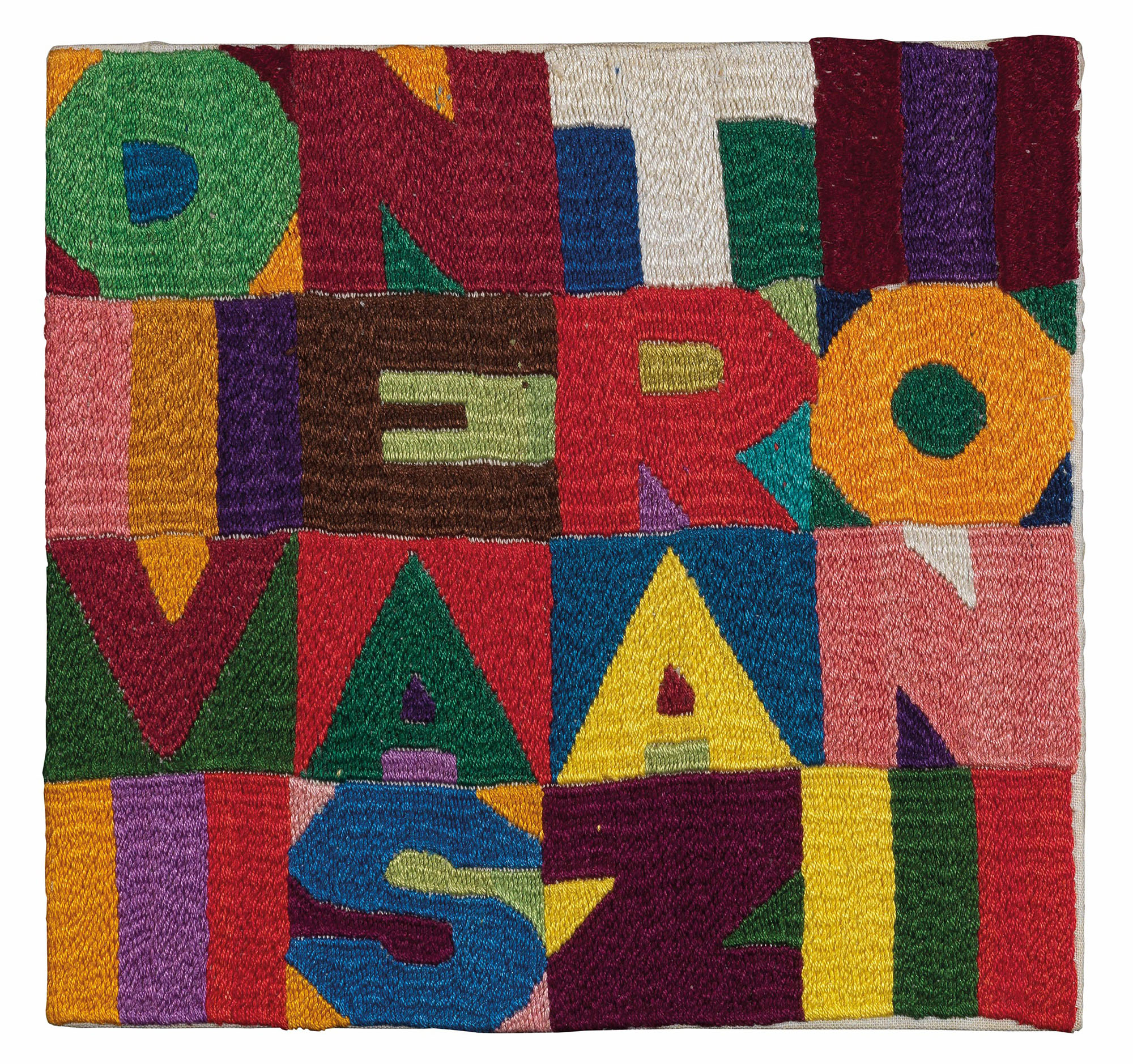 Alighiero Boetti (1940-1994), Divine astrazioni, 1987 ca., embroidery on cloth, 17x18cm signed on the reverse Work registered at Archivio Alighiero Boetti, Rome on 14 July 2020, under the n. 9695