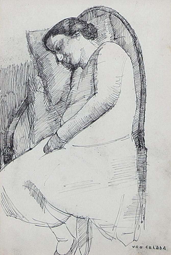 UGO CELADA Cerese di Virgilio (Mn) 25/05/1895 - Varese 09/08/1995 Ritratto di donna addormentata china su carta cm. 23x15, firma in basso a destra.