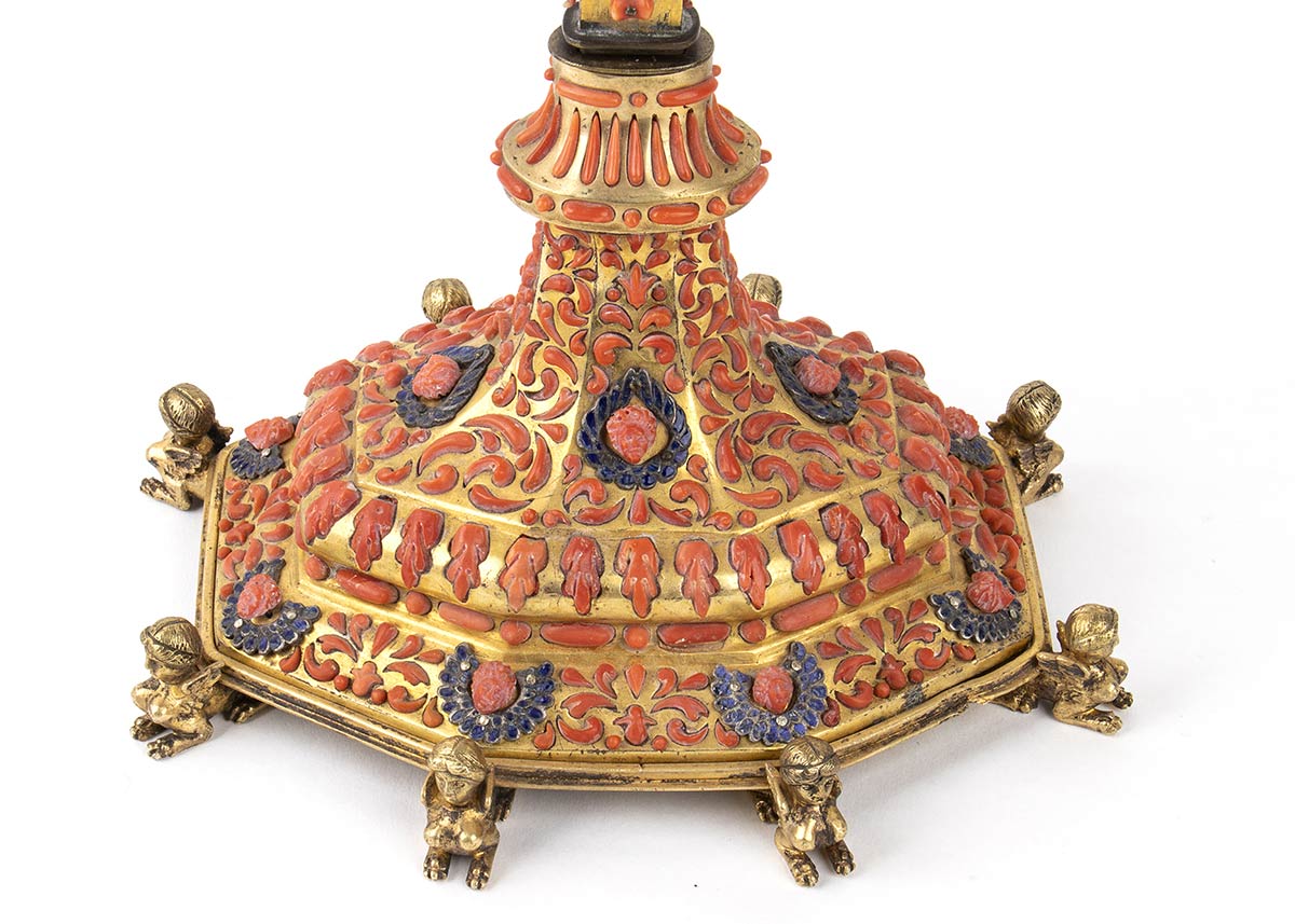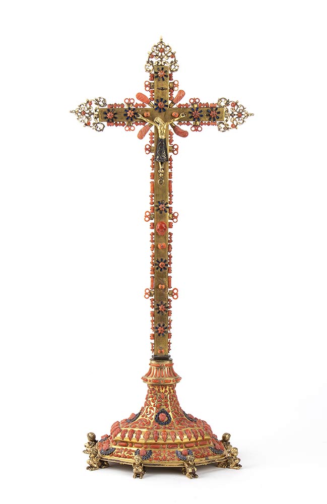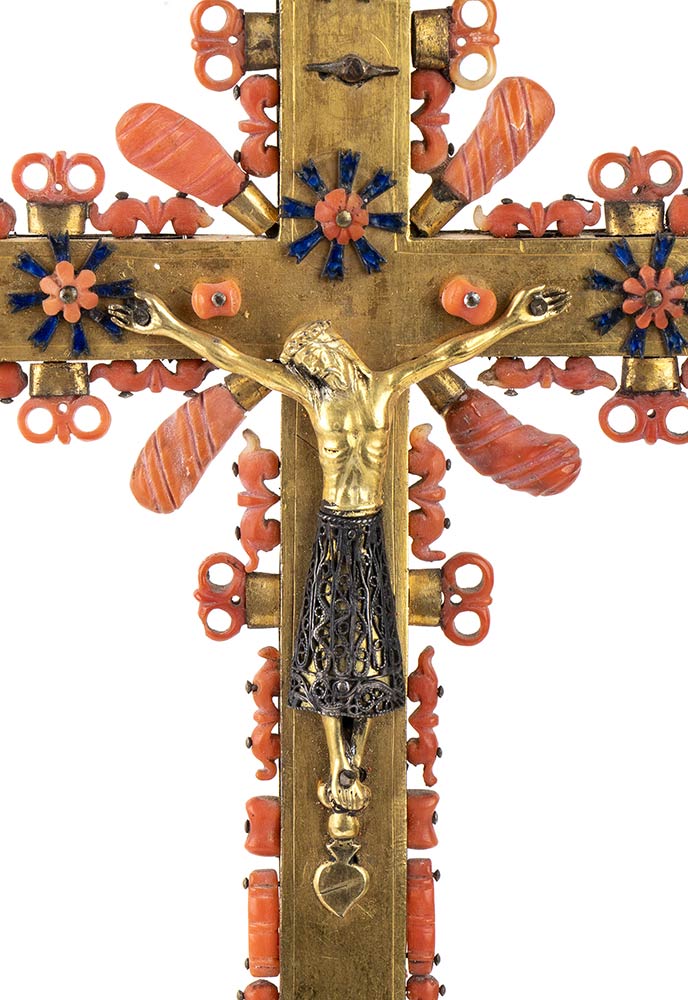 Lot 52 | Crocifisso in rame dorato, coralli e smalto blu - Trapani, prima metà del XVII secolo