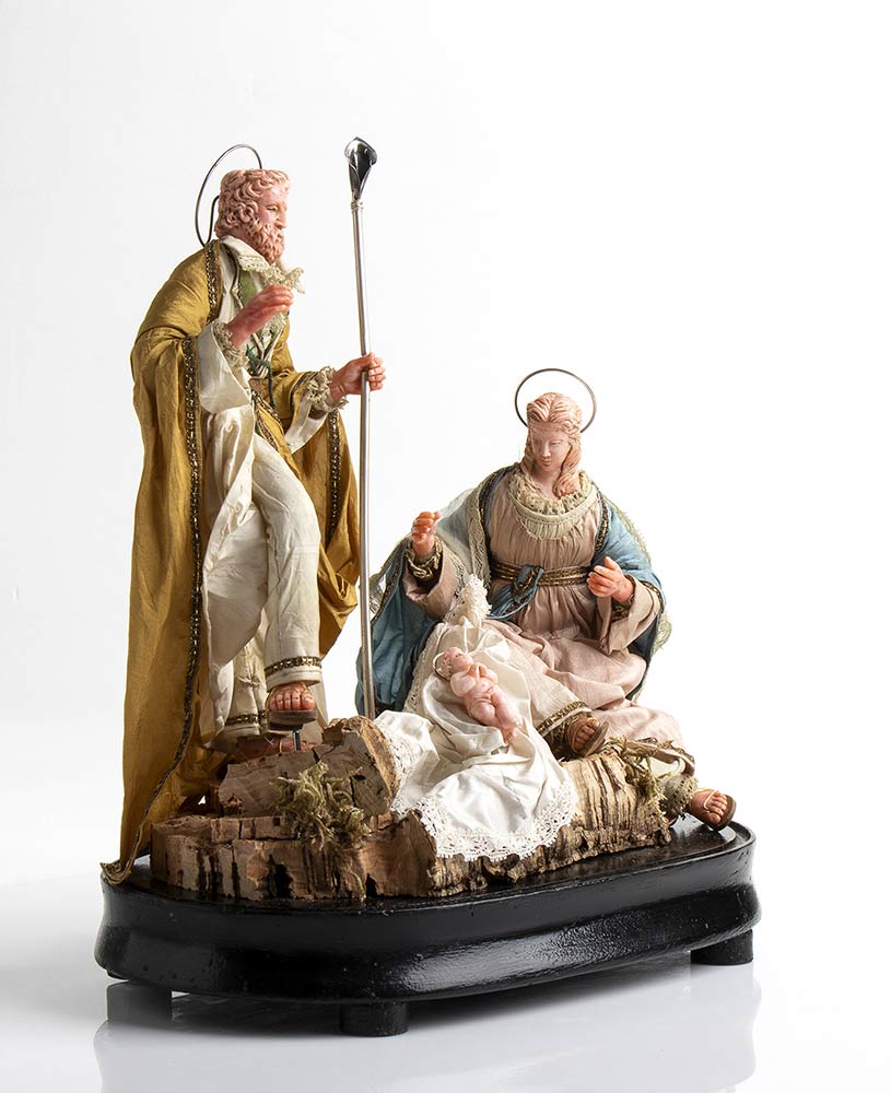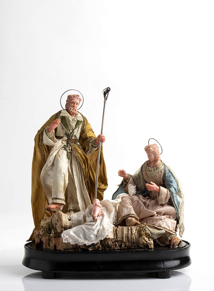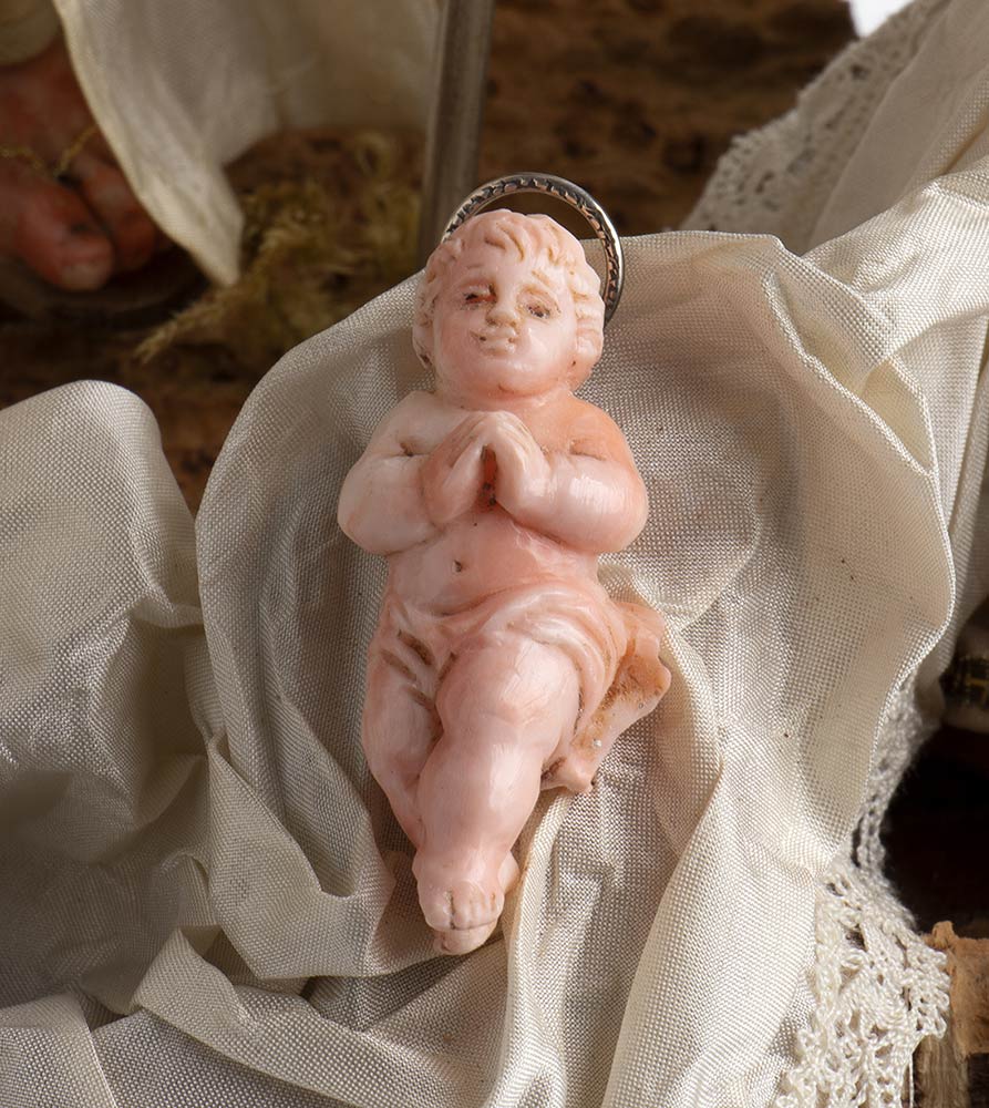 Presepe Napoletano con teste, mani, piedi e bambinello in corallo Cerasuolo - Manifattura Guarracino, Torre del Greco