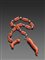 Amuleto d'epoca con catena in corallo Mediterraneo (Corallium Rubrum) e oro bassa caratura; cornetto scaramantico in corallo Cerasuolo (Corallium Elatius). Manifattura Ascione, Torre del Greco. Lunghezza totale 36 cm. Lunghezza corno 5,2 cm. Peso totale 36 gr. Stato di conservazione: *****ottimo.
