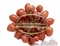Spilla con frutta e foglie in corallo di Sciacca (Corallium Rubrum), montatura in oro giallo. Punzonata "750". Dimensioni 45,9 x 40 mm, spessore 20,5 mm. Peso totale 22,2 gr. Stato di conservazione: *****ottimo.