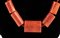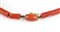 Collana ad un filo di cilindri di corallo Cerasuolo (Corallium Elatius) disposti in gradazione; chiusura in oro giallo 18k incastonata con cabochon di corallo, punzonata "750" e "31, marchio del fascio, NA". Lunghezza 84 cm, lunghezza cilindri corallo 18,5 - 12,5 - 8,5 - 6 mm. Peso totale 128,6 gr. Stato di conservazione: *****ottimo.